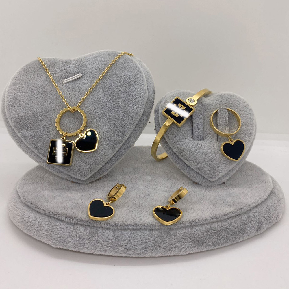 The super personalized black gold love gold jewelry set is 🖤 here The gold border is matched with black hearts, square pendants, necklaces, bracelets, and earrings, which are cool and a little sweet, unique and eye-catching~