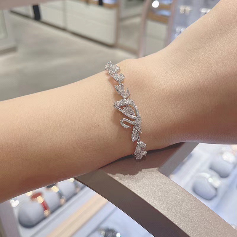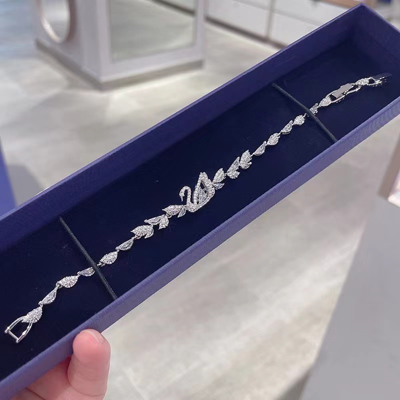 With a silver chain as the main body, inlaid with a number of shining crystals, the swan shape in the center is particularly eye-catching, and the whole body is full of diamonds design, which is smart and elegant. Delicate details blend with gorgeous textures, adding a noble charm to your wrist whether you wear it for everyday wear or attending important occasions, making it a stylish choice for showing off elegance.