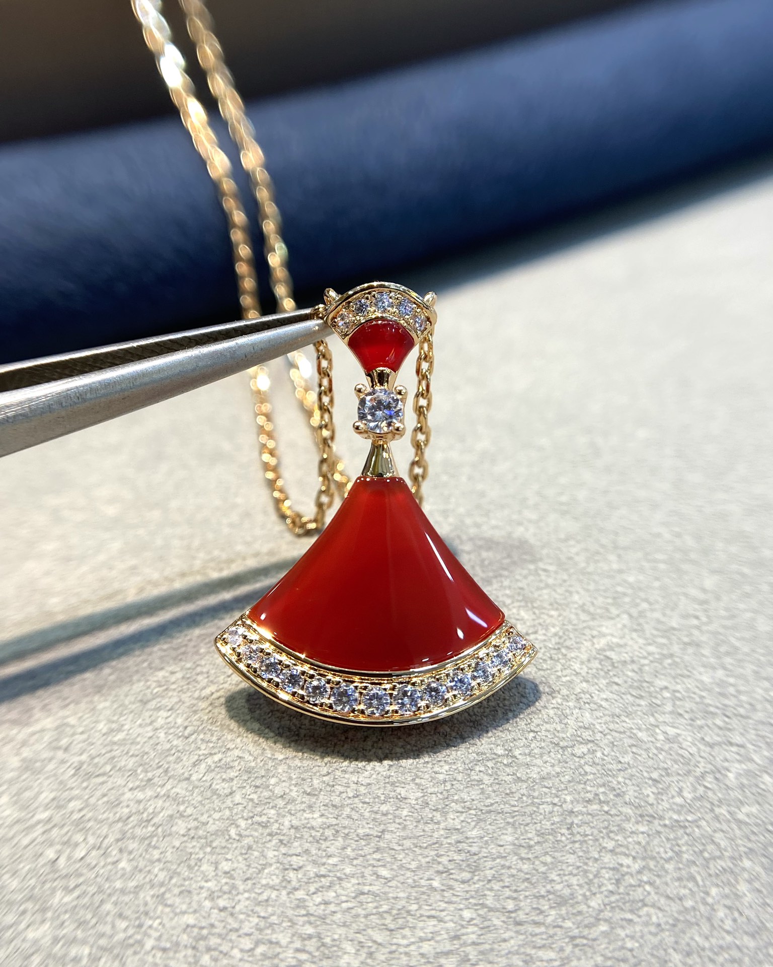 Bulgari Divas' Dream Red Onyx Necklace Scalloped Skirt Diamond-Encrusted Pendant Elegant Jewelry Necklace