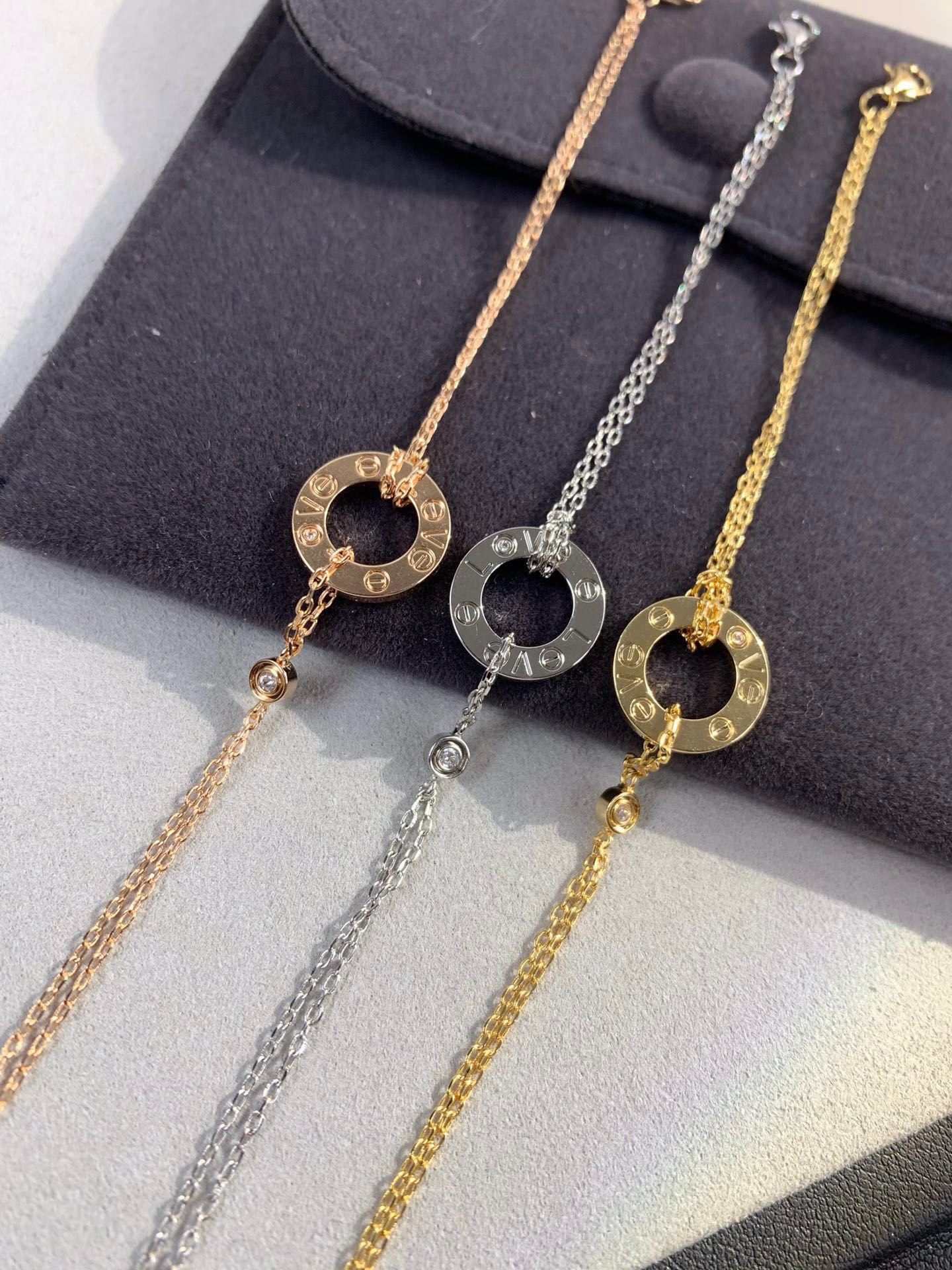 With a ring as the main body, it is engraved with letters, with thin chains and small diamonds, and is available in gold, silver and rose gold. The simple design adapts to a variety of styles, adding a sense of sophistication to the wrist, and is a fashionable item for daily wear.