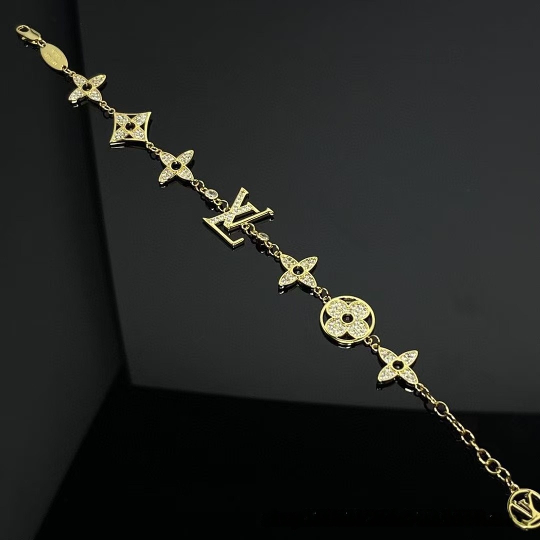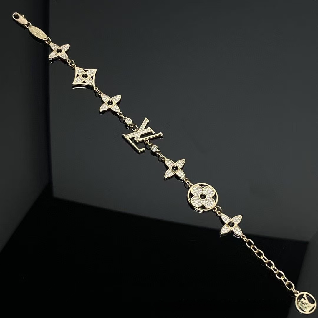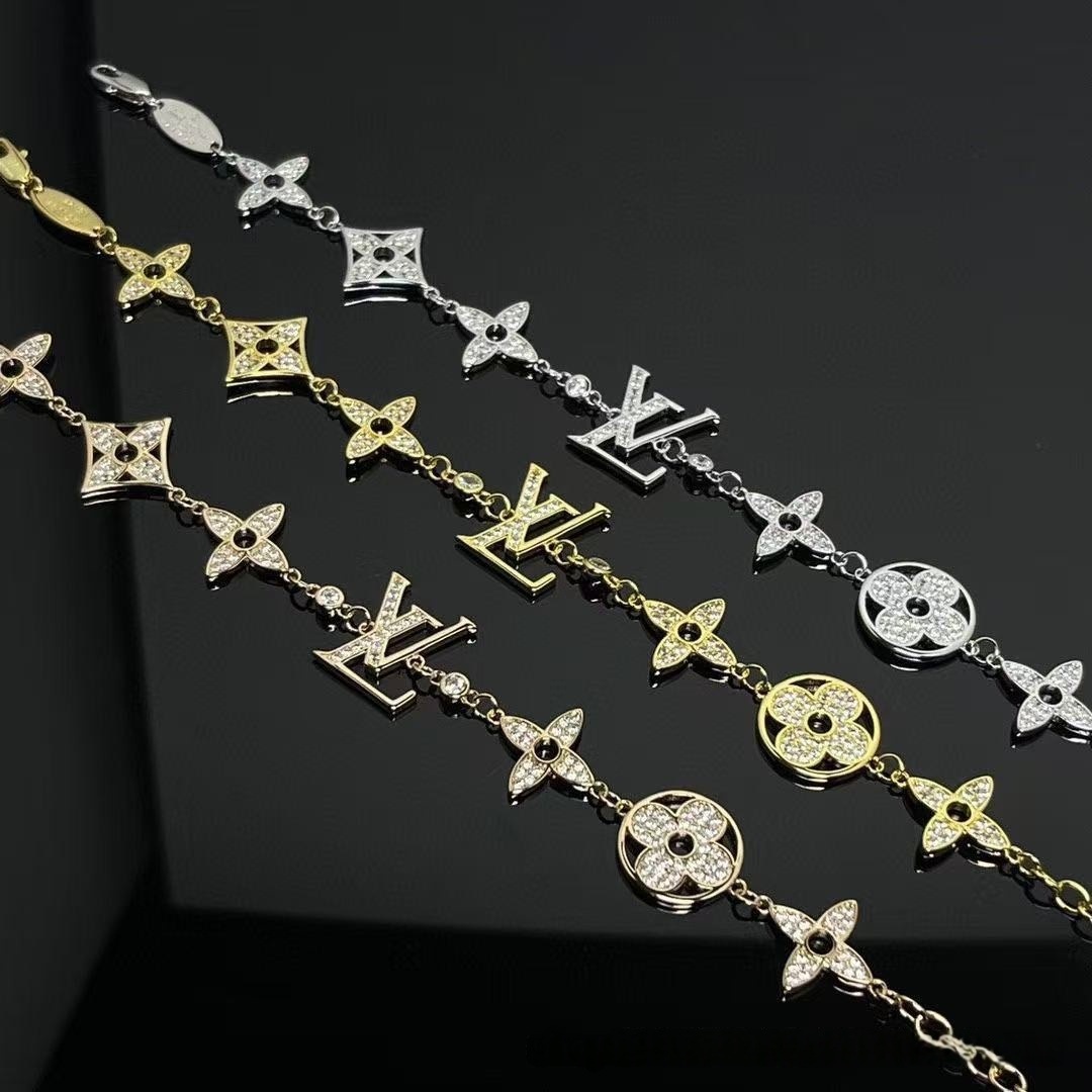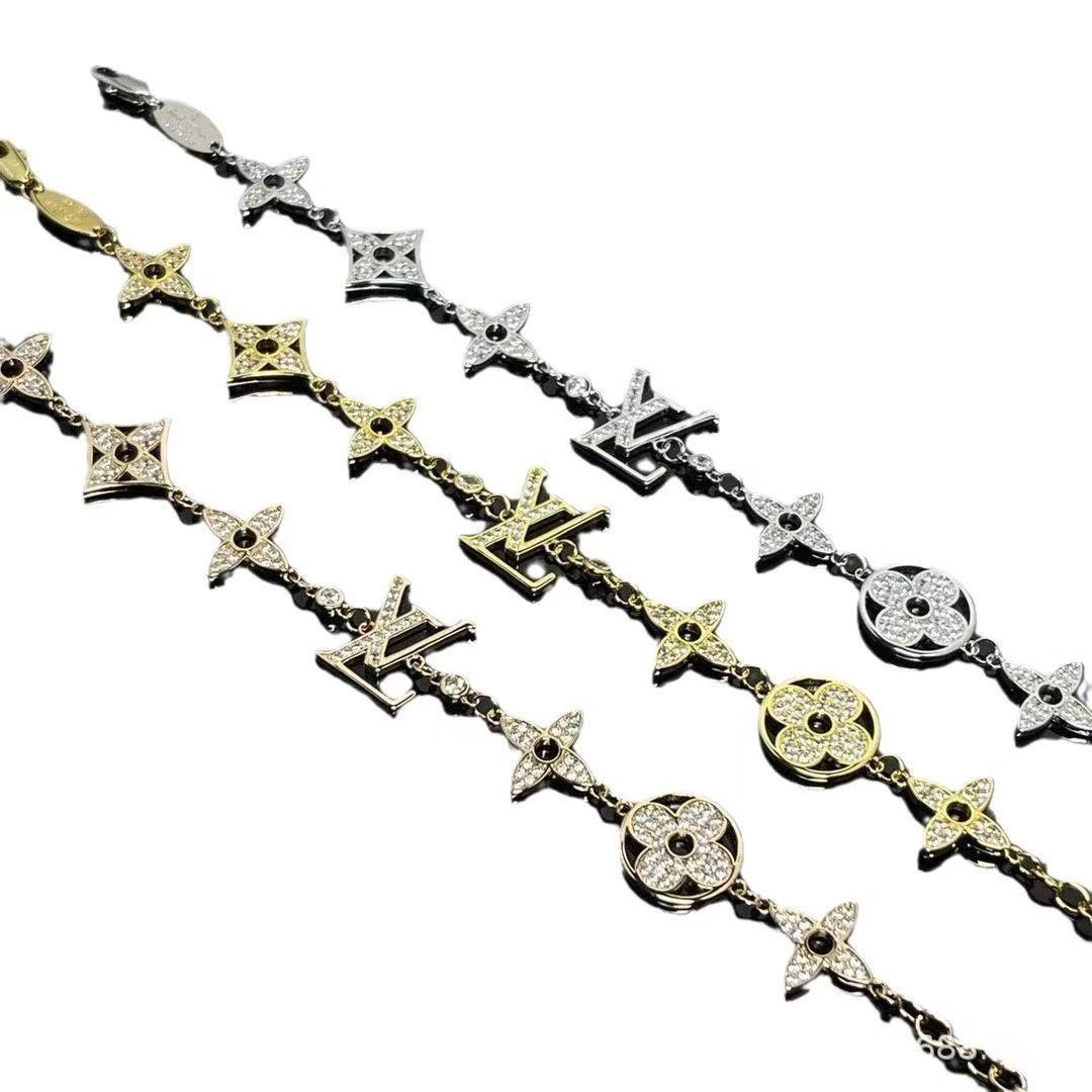 Combining classic old flower elements with a four-leaf flower shape, it is paired with a diamond-encrusted monogram logo to sparkle exquisitely. The silver chain has a delicate texture, is fashionable and recognisable, suitable for daily life, dating and other occasions, adding elegant charm to the wrist, and is an eye-catching accessory to show unique taste.
