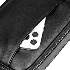 This bag from COACH is made of black leather with a delicate texture and simplicity. The double zip design makes it easy to sort and store items, and the brand logo on the front shows identity. Equipped with adjustable shoulder straps, it can be worn on one shoulder or crossbody, suitable for daily travel, casual gatherings and other occasions, and is a classic item that combines both practicality and fashion.