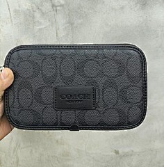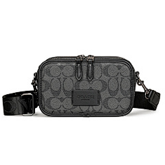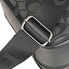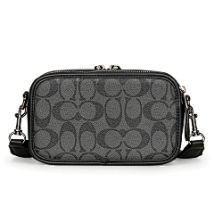 This bag from COACH is crafted from the brand's signature old-flower pattern fabric with black leather trim. The double zipper design allows for easy opening and closing, increasing storage flexibility. Equipped with adjustable shoulder straps, it can be worn on one shoulder or crossbody, suitable for daily travel with carry-on items, simple yet stylish, highlighting the brand's classic style and practicality.