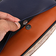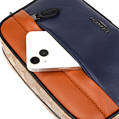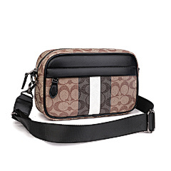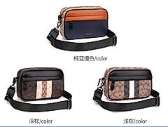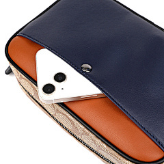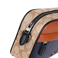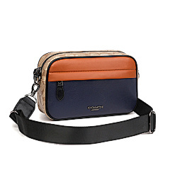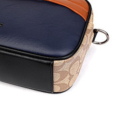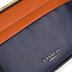This bag from COACH features classic presbyopia elements with navy blue and tan leather panels, with a harmonious and layered colour scheme. The double zipper pocket design is convenient for storing all kinds of belongings, and it is equipped with adjustable shoulder straps to meet the needs of one shoulder or crossbody, suitable for daily travel, shopping and other occasions, showing American casual fashion style.