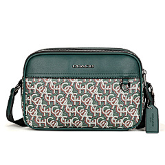 COACH dark green spliced old flower one-shoulder crossbody camera bag