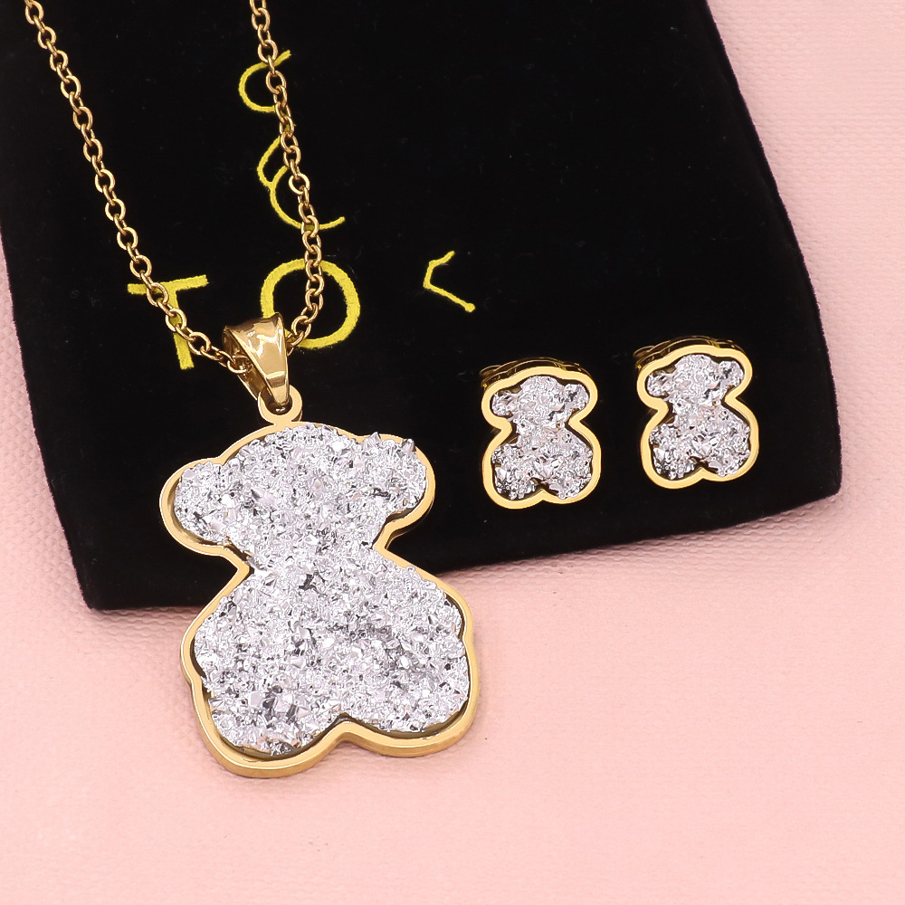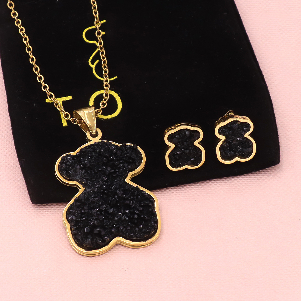 The super special crystal cluster bear jewelry set is here The 🐻 golden border wraps the natural crystal clusters, and the necklace pendants and earrings are all cute bear shapes, which blend nature and cuteness, unique and eye-catching~