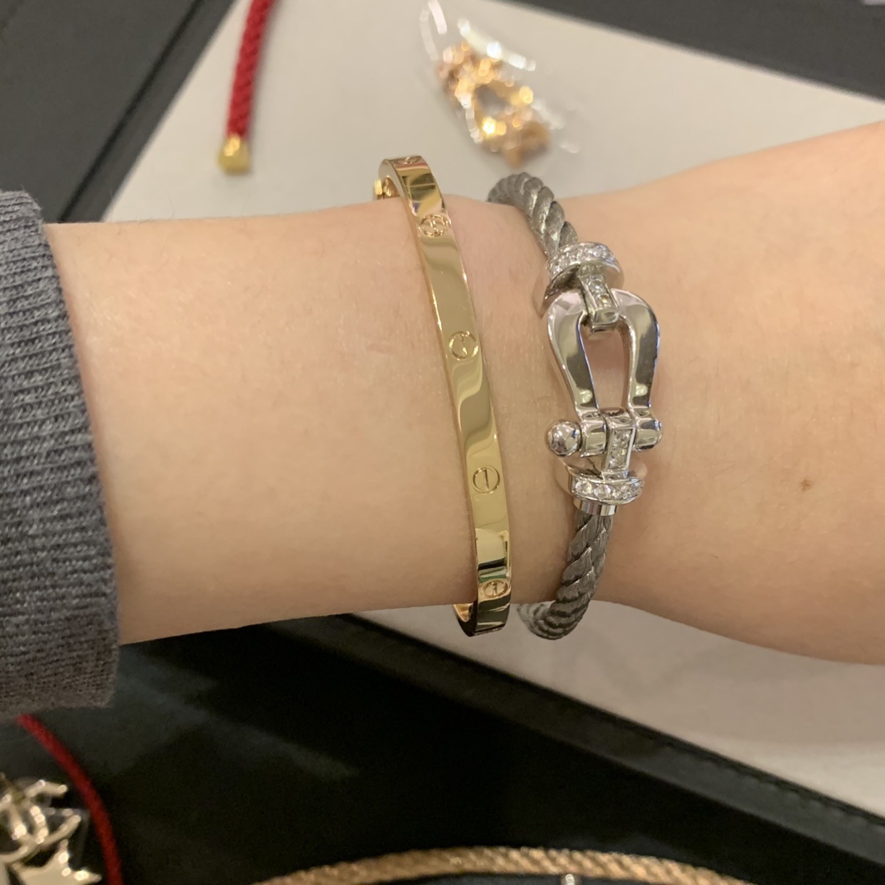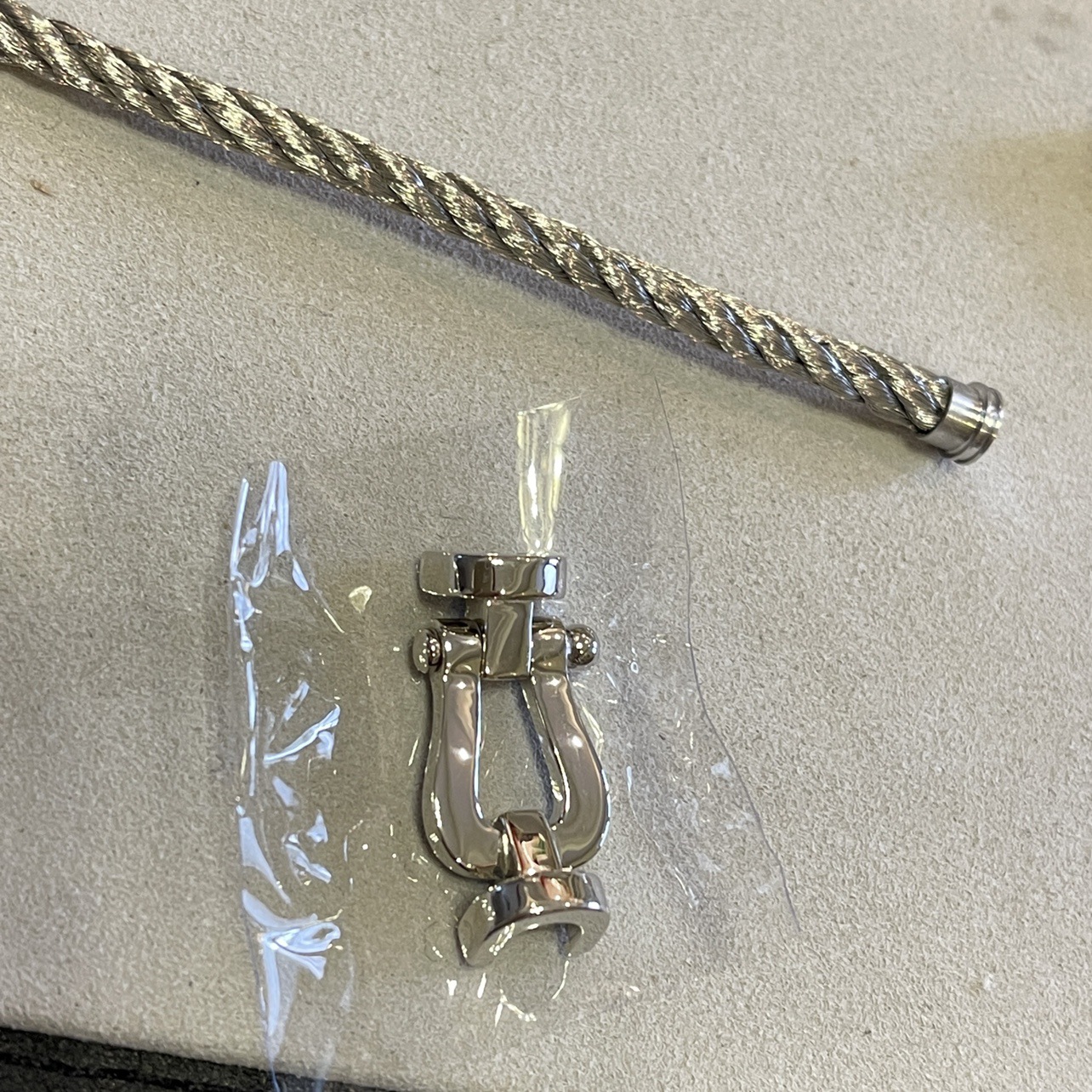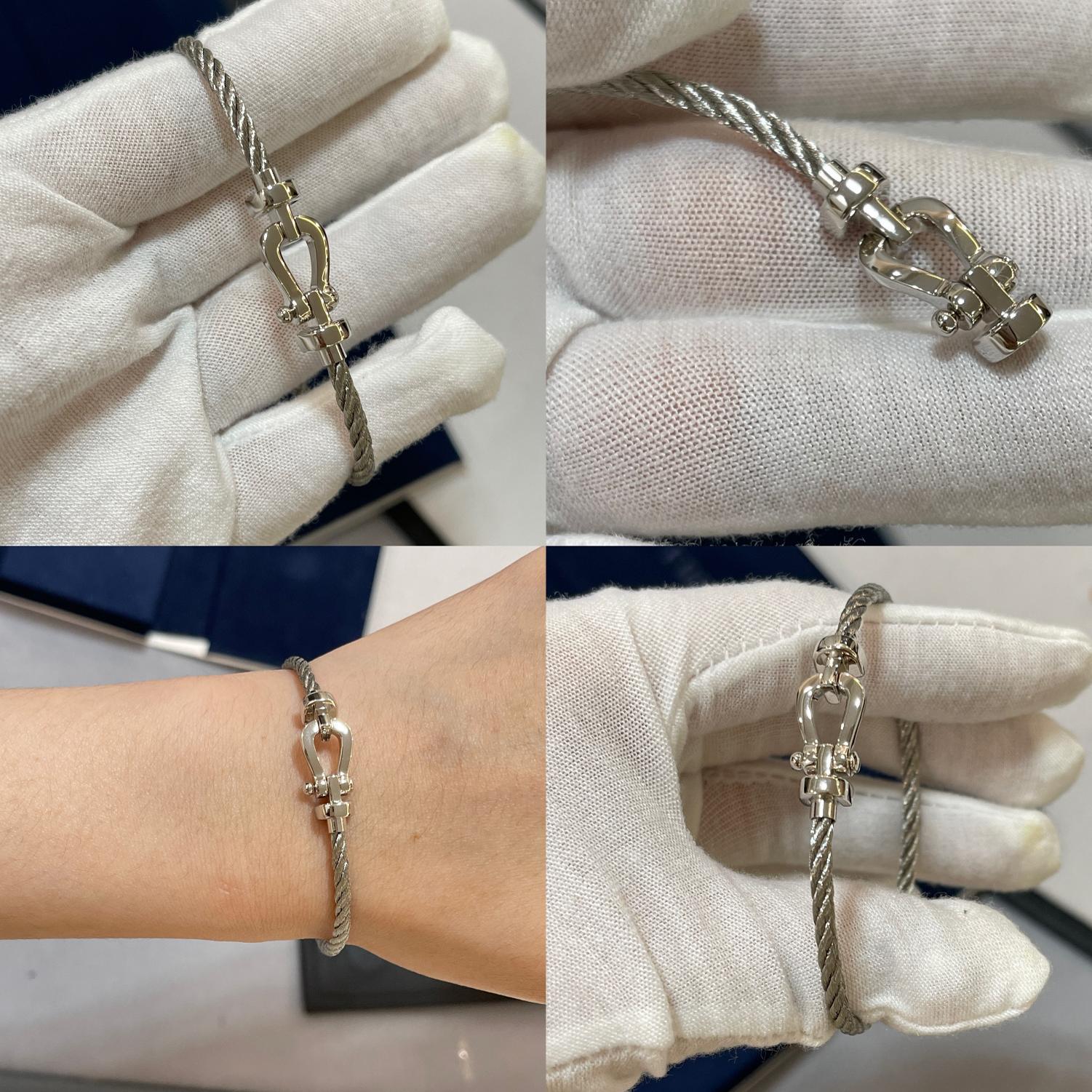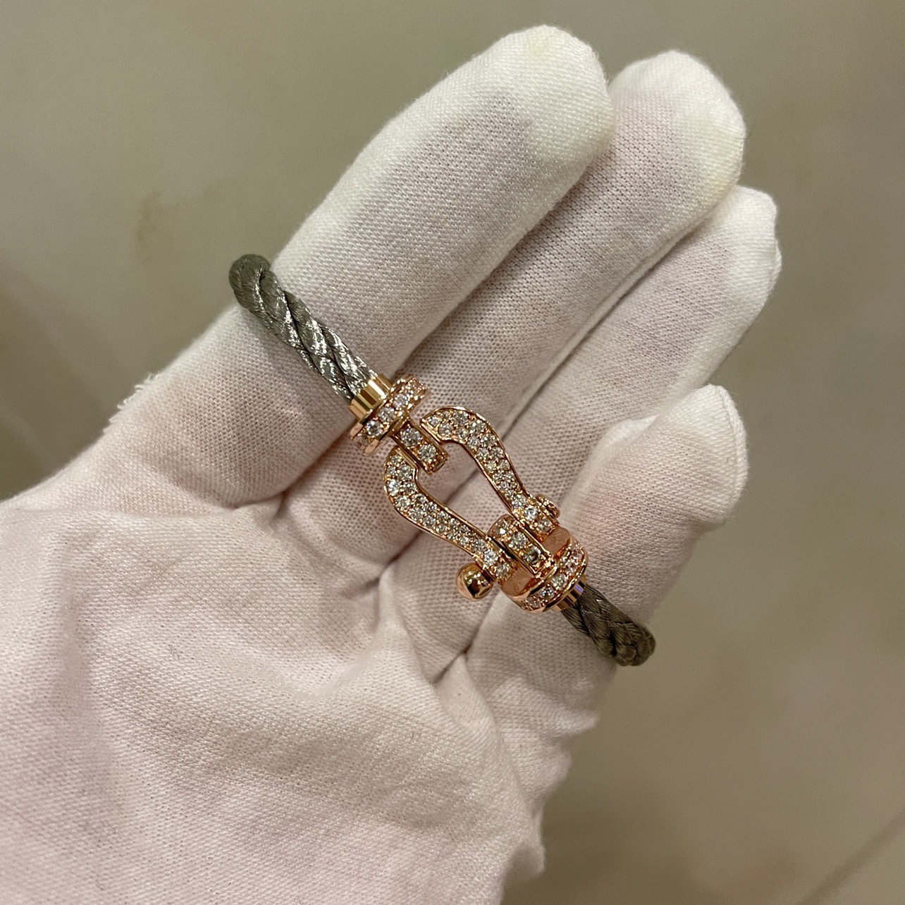 This bracelet features a black braided leather cord as the main body, with a metal buckle encrusted with diamonds, the buckle design is exquisite, the diamonds shine brightly, and the black and white colour scheme is classic and stylish. The bracelet combines the soft texture of leather with the luxury of diamonds, and has a unique style, which can be worn with casual wear to highlight personality, or with formal wear to add a touch of sophistication, suitable for those who pursue fashion and quality.