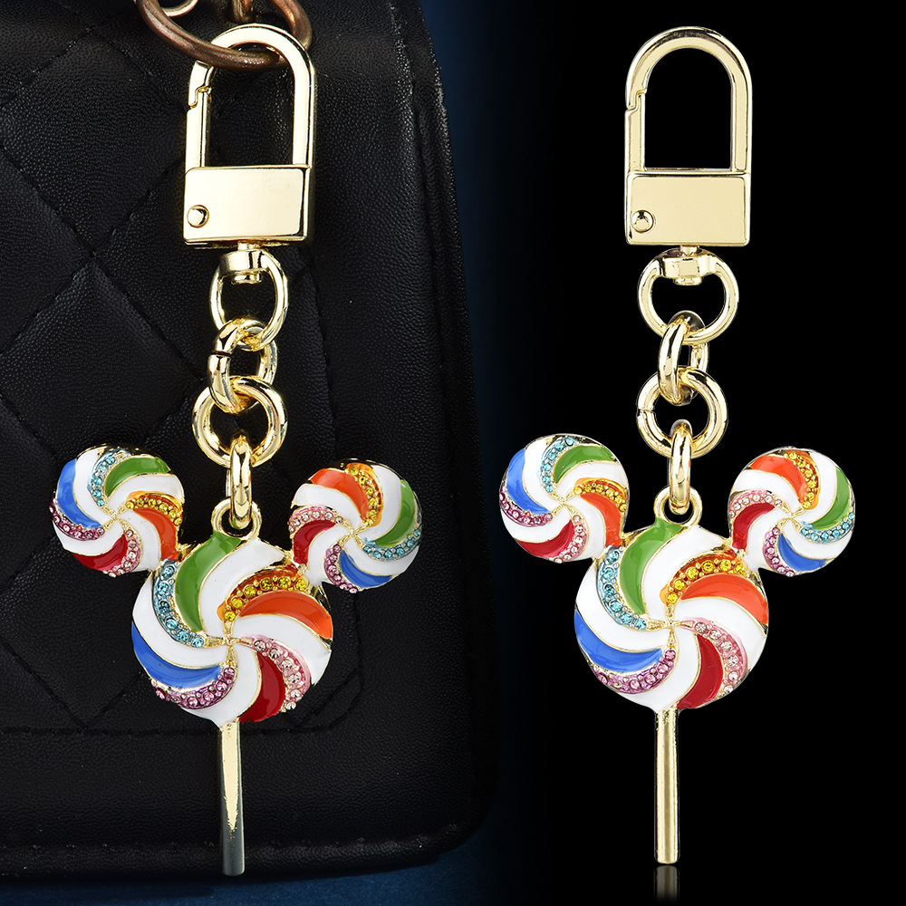 Diamond-encrusted Mickey Lollipop keychain Cartoon creative bag pendant Fashion pendant small gift
