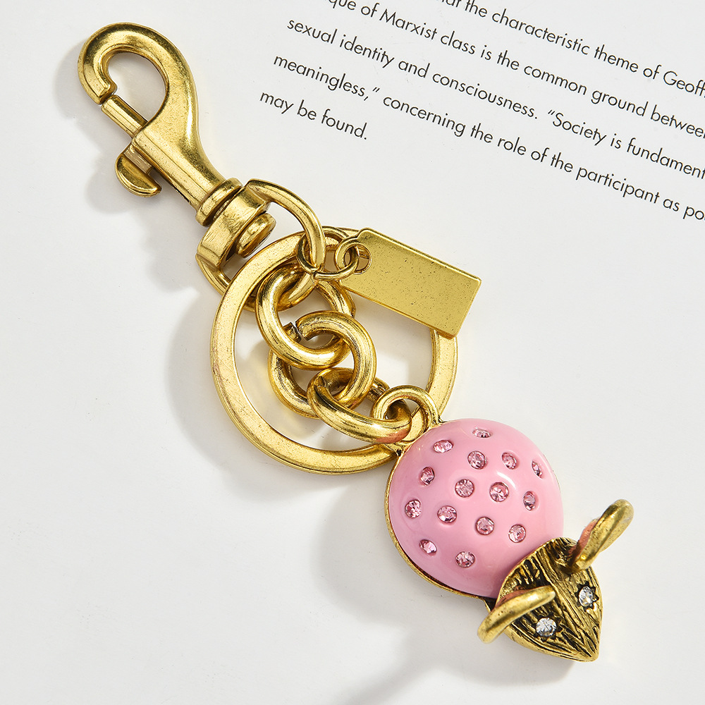 The super sweet diamond-encrusted strawberry keychain combination is ๐ here Pink strawberry is full of diamonds, with a retro gold buckle, and the size design is super cute~