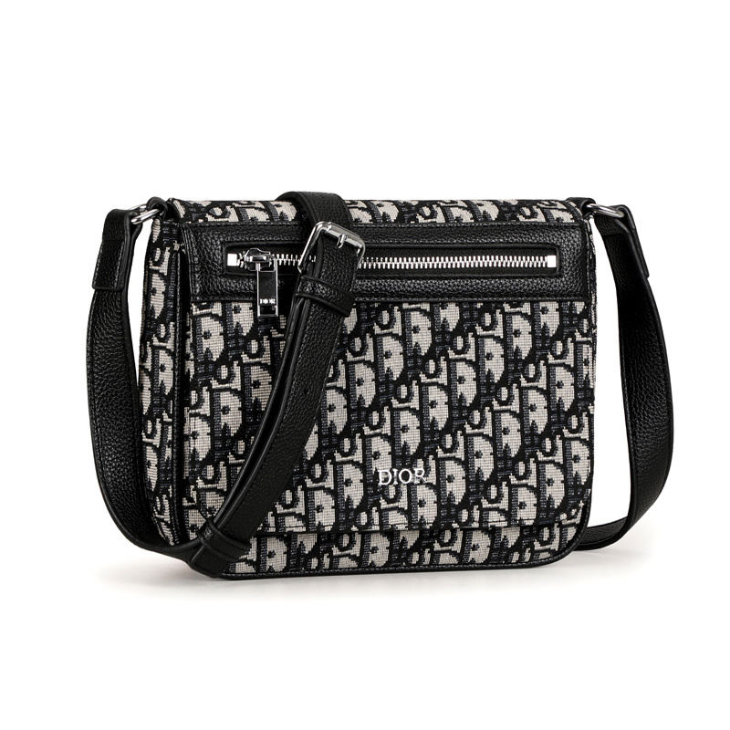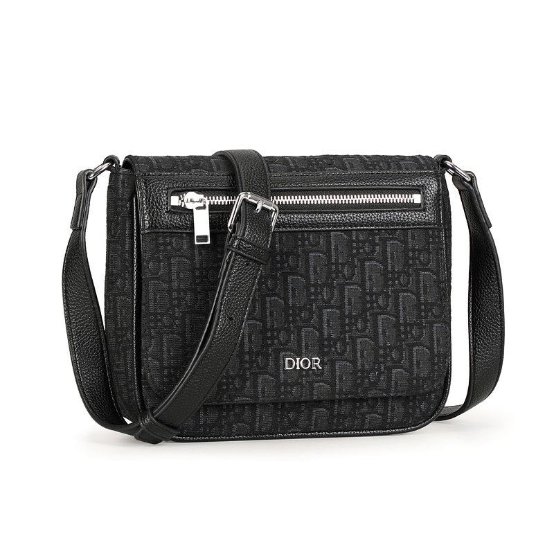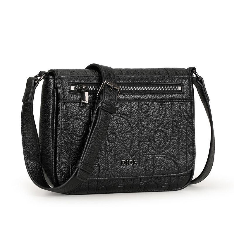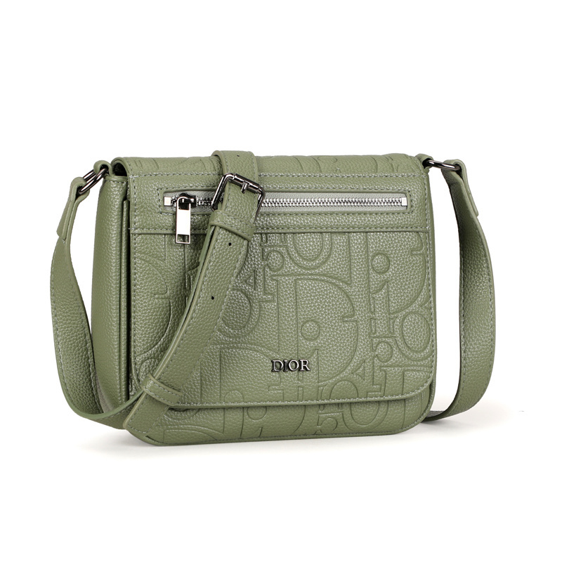 Dior embossed monogram one-shoulder crossbody bag in olive green textured cowhide for women.