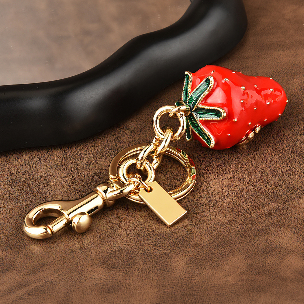 The super exquisite enamel strawberry keychain is π here Bright red enamel is embellished with gold painting, with a retro gold buckle, the details are full of super eye-catching~