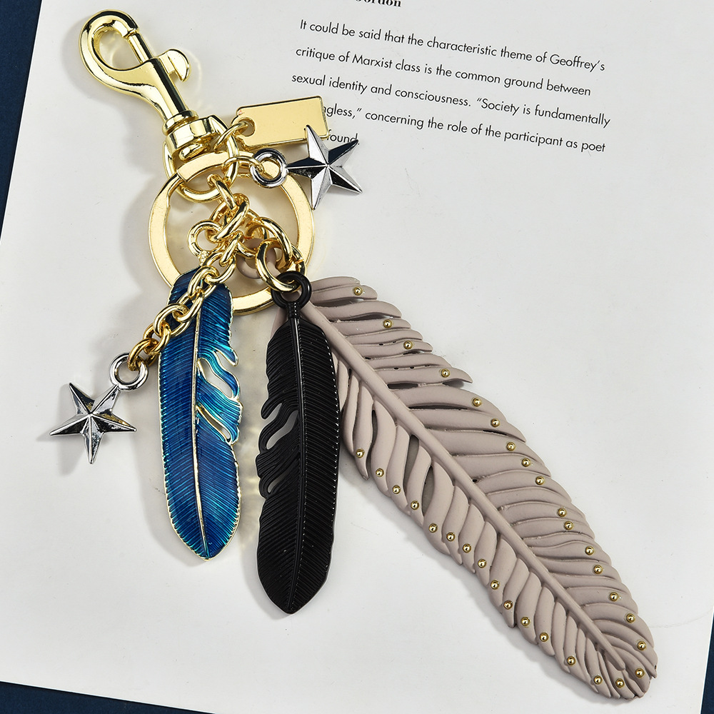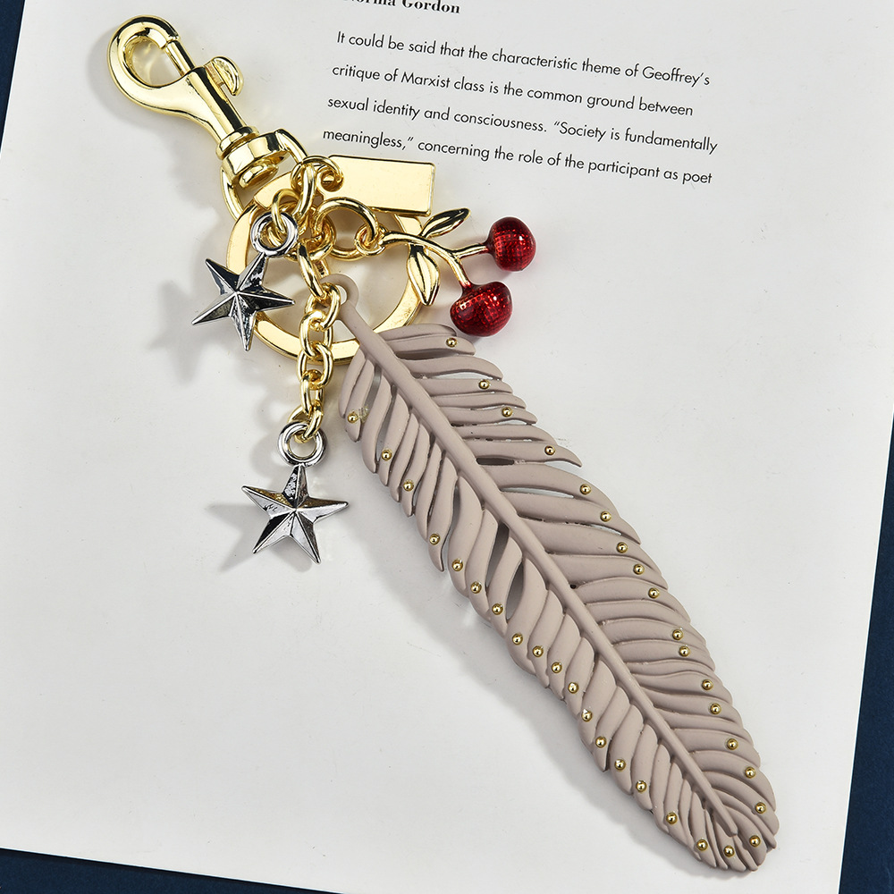 Fashion feather keychain, personalized star cherry charm, bag pendant, creative gift