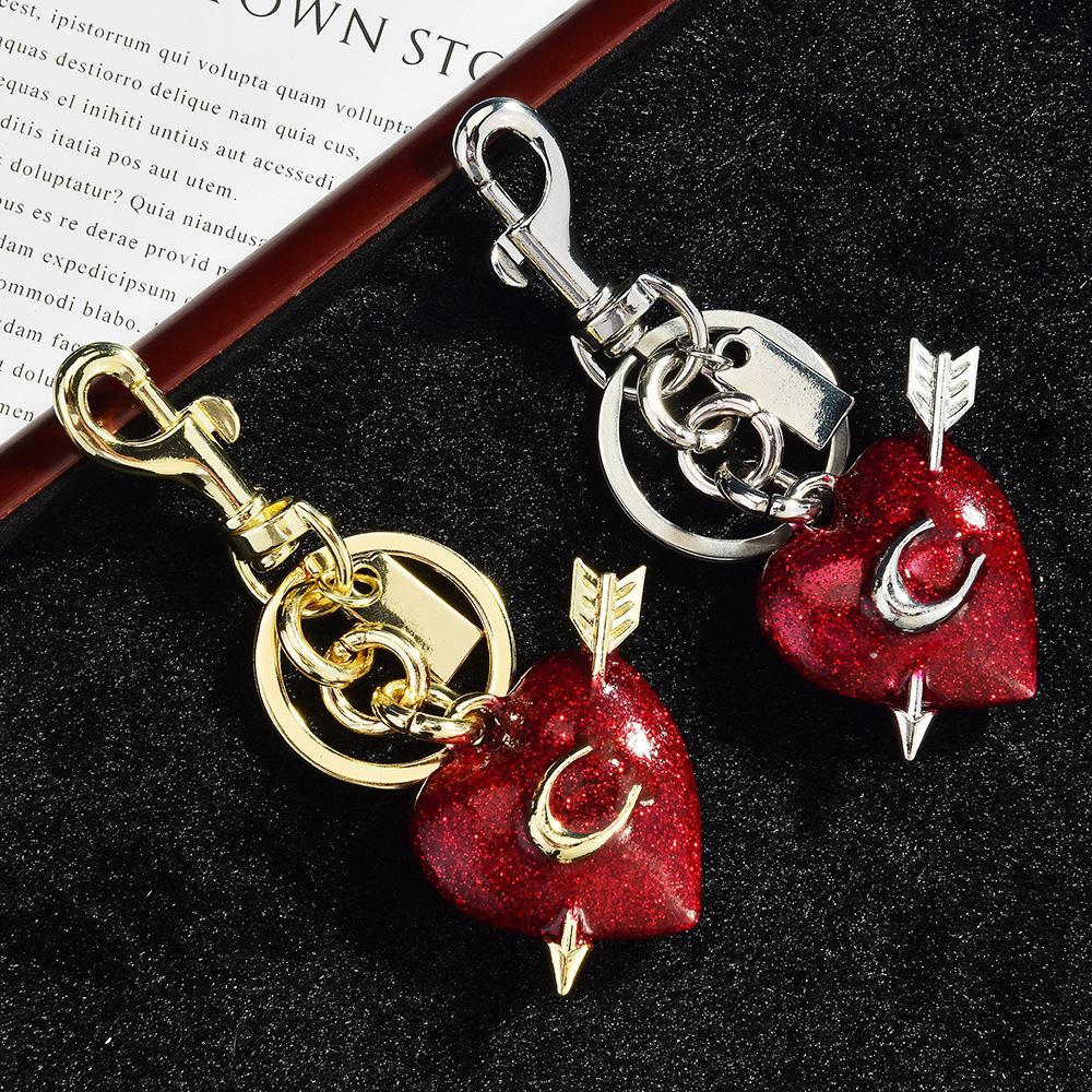 Fashionable heart arrow keychain Shiny red heart pendant Trendy bag pendant