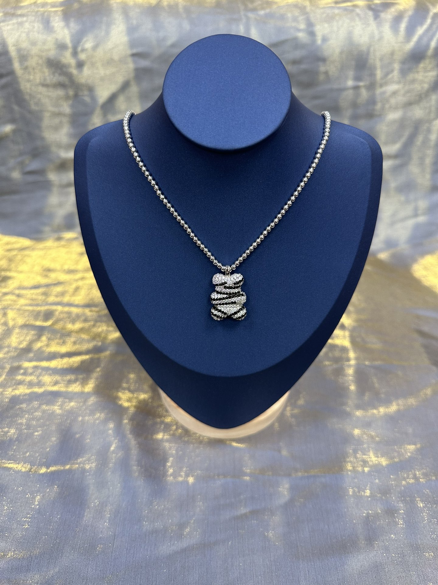 Full diamond bear shaped necklace Silver bead chain pendant necklace Cute fashion accessories