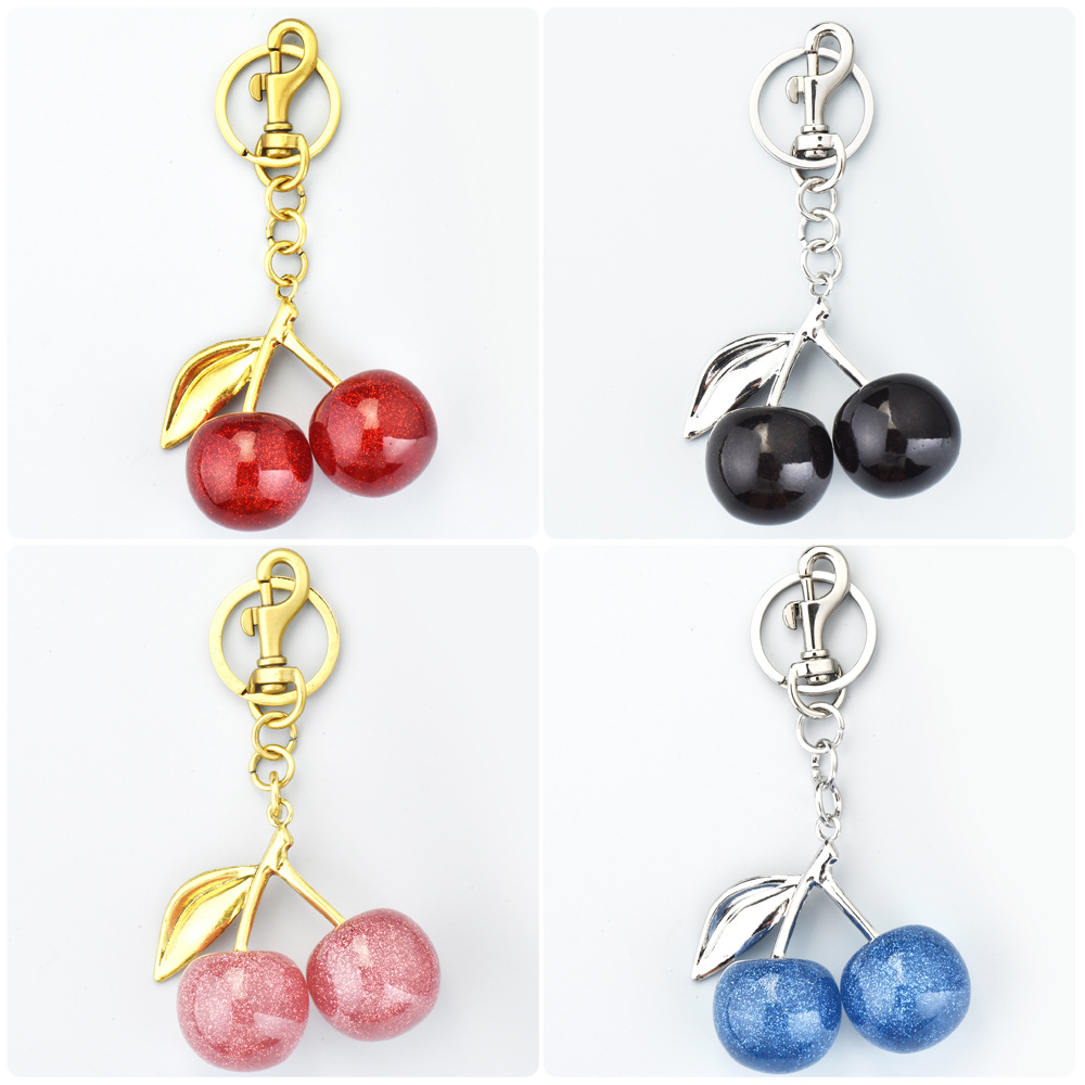 The super sweet sparkling diamond cherry keychain is here π Red, black, pink, and blue are available, and the round cherry is wrapped in fine flash, with a metal branch and leaf buckle, which is delicate and eye-catching~