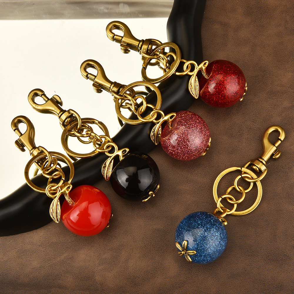 The super sweet sparkling diamond fruit keychain is here ๐ Red, black, pink, and blue are available in multiple colors, round and shiny fruit, with a retro gold buckle, delicate and eye-catching~