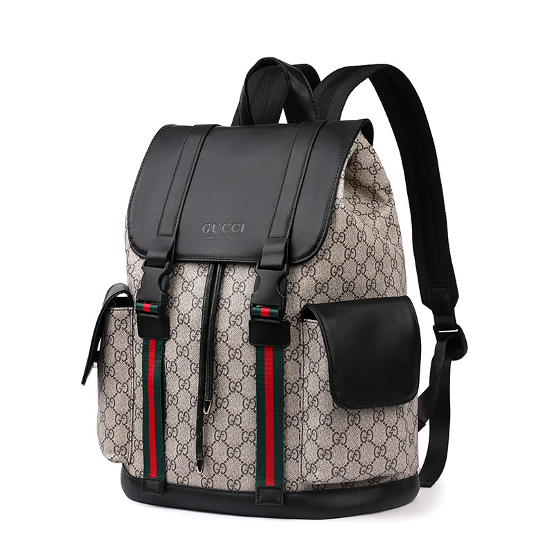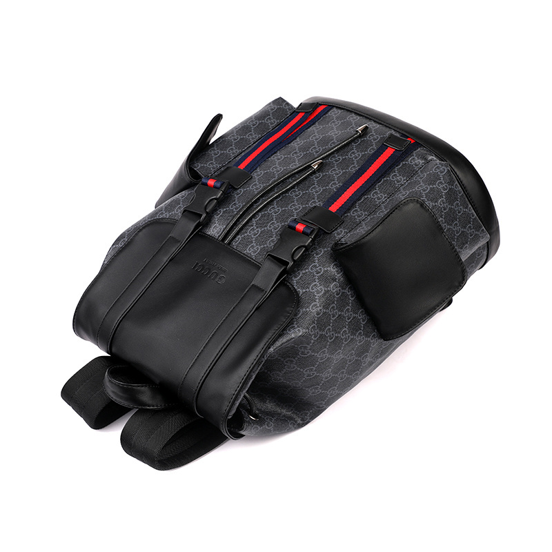 Originating from GUCCI, this backpack features the iconic Double G presbyopia fabric and is paired with black leather for a premium texture. The webbing decoration adds fashion and vitality, the multiple pockets are designed to take into account the practicality of storage, and the flap drawstring is easy to open and close; whether it is a daily trip or a short trip, it can be easily adapted, highlighting the brand's style and your fashion taste.