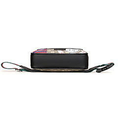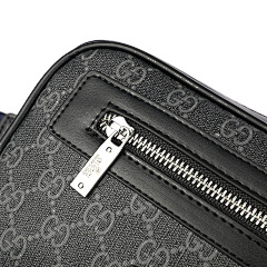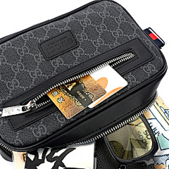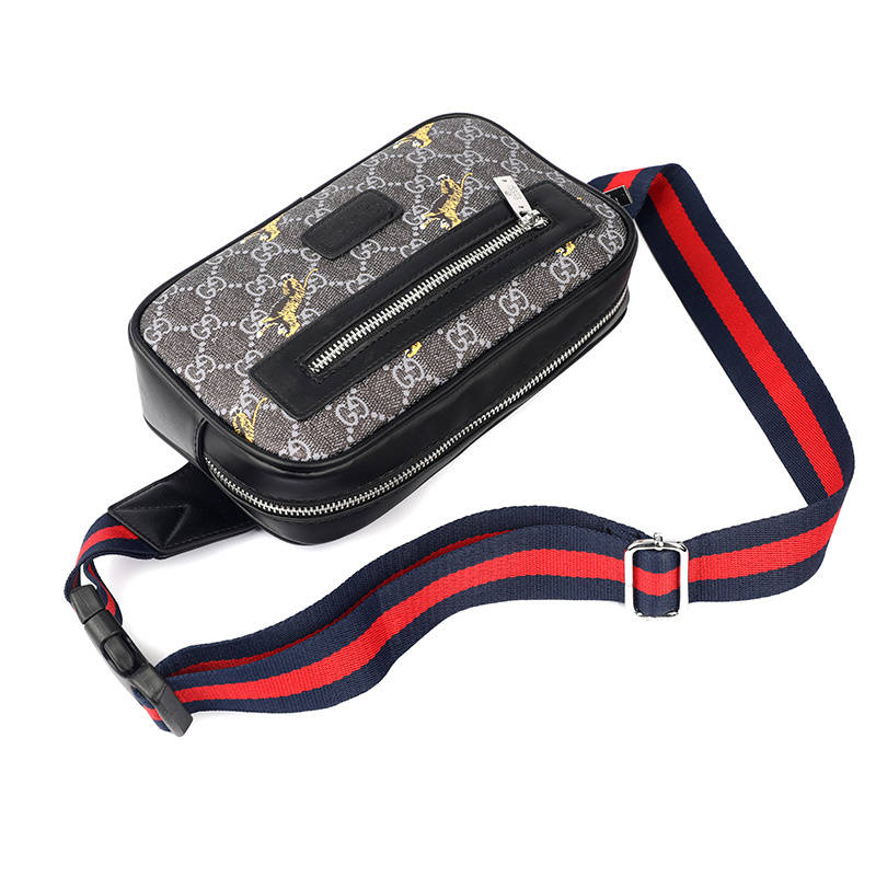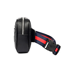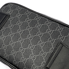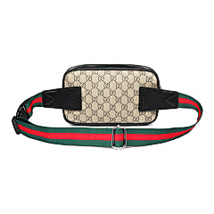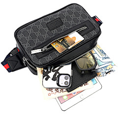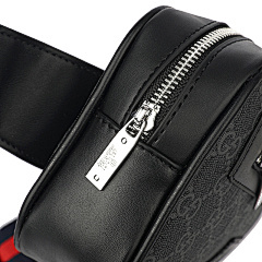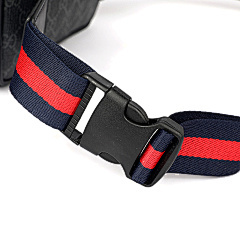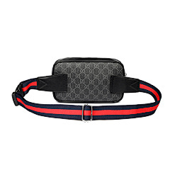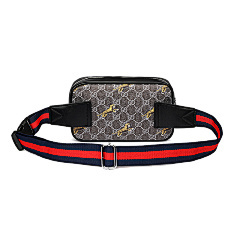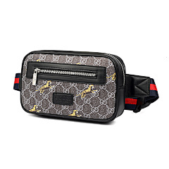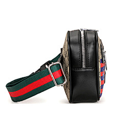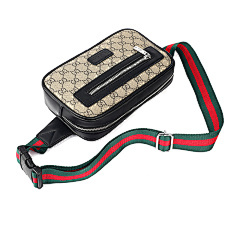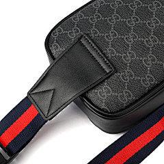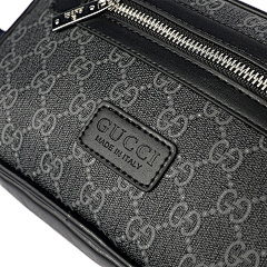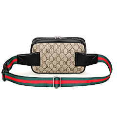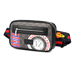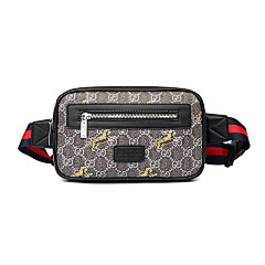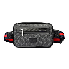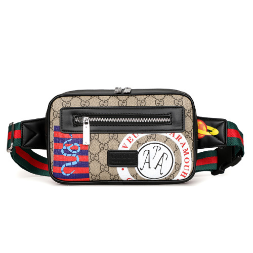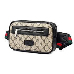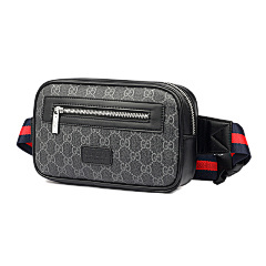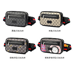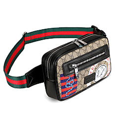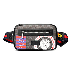 This bum bag from GUCCI uses the classic double G pattern as the base colour, with personalised printed elements such as a circular logo with brand lettering, flame patterns, etc., which is full of trend. The bag has a zippered pocket for easy storage of small items such as mobile phones and keys. The classic red and green webbing design adds brand recognition, and the adjustable belt can adapt to different waistlines, making it easy to match whether it's sports or daily outings, showcasing the fashion and personality of the GUCCI brand.
