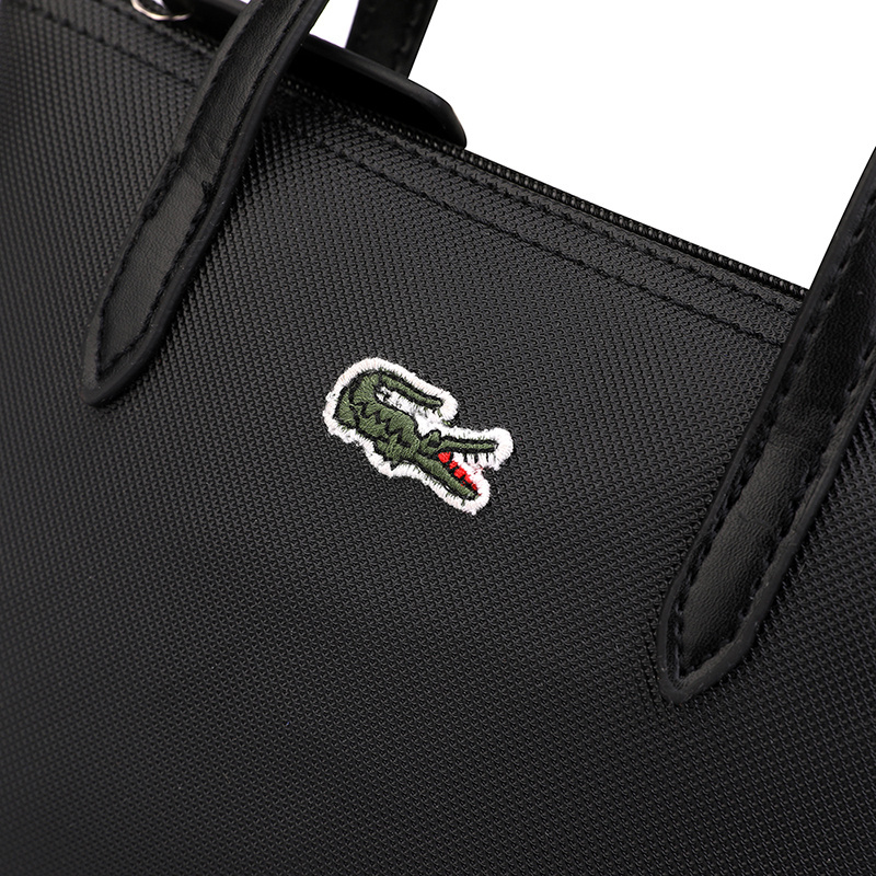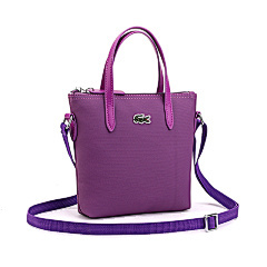 This bag is from LACOSTE and is made of elegant purple leather with a delicate texture. The iconic crocodile logo adorns the front of the bag, highlighting the brand's identity. The bag design is simple and elegant, both portable and equipped with adjustable shoulder straps for crossbody wear, meeting the needs of different usage scenarios. The interior space is reasonable, suitable for daily commuting or shopping, and is a fashion item that combines beauty and practicality.