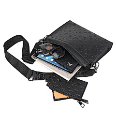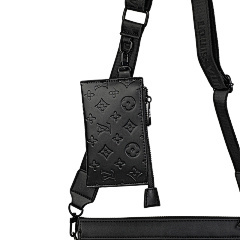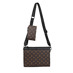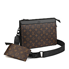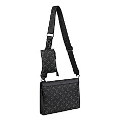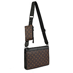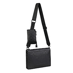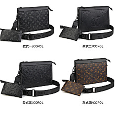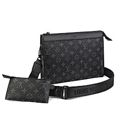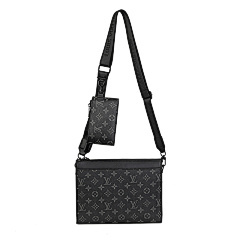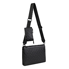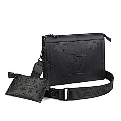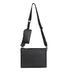 This bag from Louis Vuitton (LV) is made of black leather and embossed with the classic LV Monogram pattern on the surface, highlighting the brand's recognition. The mother-and-child bag design features a large space in the main bag, which can store books, tablets and other daily travel items; the small bag is suitable for storing small items such as keys and coins. Equipped with adjustable shoulder straps, it can meet the needs of single shoulder or crossbody, making it suitable for commuting, shopping, travel and other occasions, showcasing the LV brand's high-end texture and practical design style.