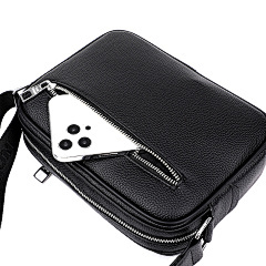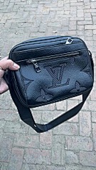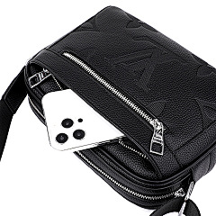 This bag from Louis Vuitton (LV) is made of black leather and embossed with the classic LV logo on the surface, making it very recognisable. The bag is equipped with a zippered pocket to easily store mobile phones, wallets and other personal belongings, meeting the needs of daily travel. The adjustable shoulder strap design can adapt to different usage methods on one shoulder or crossbody, suitable for shopping, commuting and other occasions, highlighting the high-end texture and classic fashion style of the LV brand.