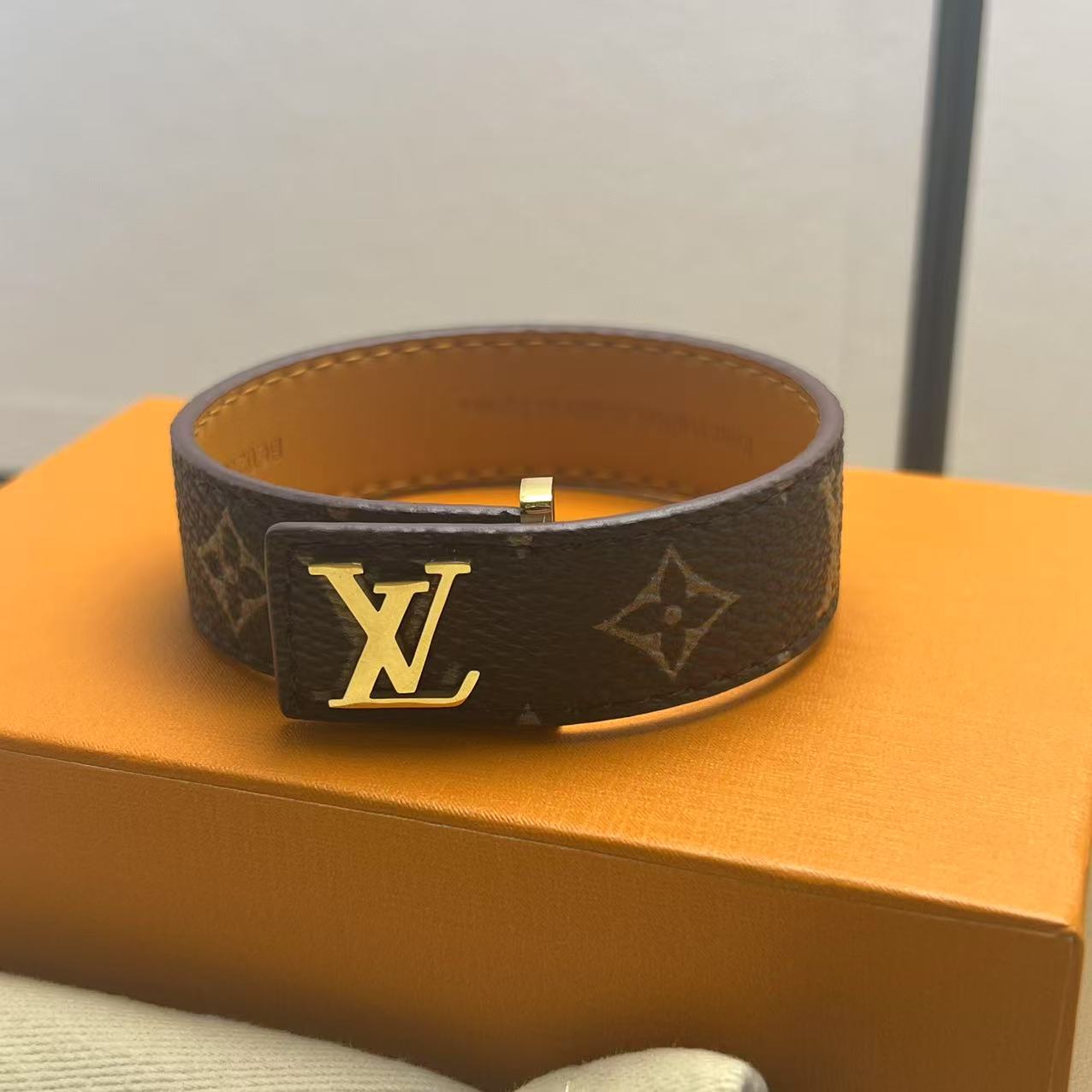 LV classic presbyopia leather bracelet high-end metal logo light luxury wristband