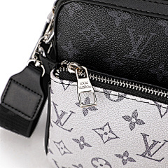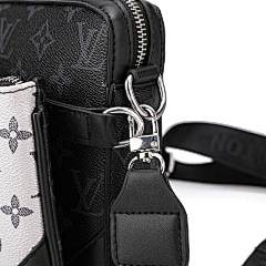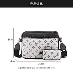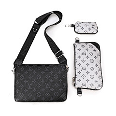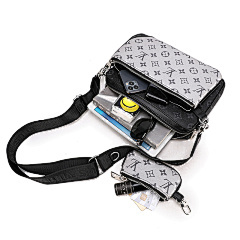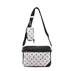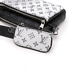 This bag is from Louis Vuitton (LV), and the main bag and small bag are made of classic presbyopia patterns, with black leather details, which are highly recognisable. The main bag can store larger items for daily travel, and the small bag is suitable for storing small items such as keys and change. Equipped with adjustable shoulder straps, it can meet the needs of one shoulder or crossbody, suitable for shopping, travel and other occasions, showing the LV brand's luxurious and practical design style.