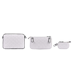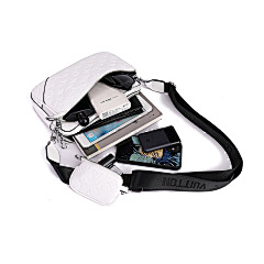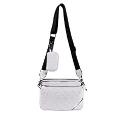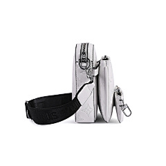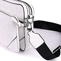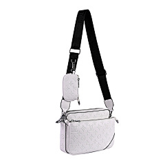 This bag is from Louis Vuitton (LV), and the main bag and small bag are made of white embossed material and printed with the classic LV pattern, which is simple yet luxurious. The mother-and-child bag design allows the main bag to store essential items for daily travel, while the small bag is convenient for storing small items. Equipped with adjustable shoulder straps, it can be worn on one shoulder or crossbody, making it suitable for daily outings, travel and other occasions, highlighting the fashion style and practicality of the LV brand.
