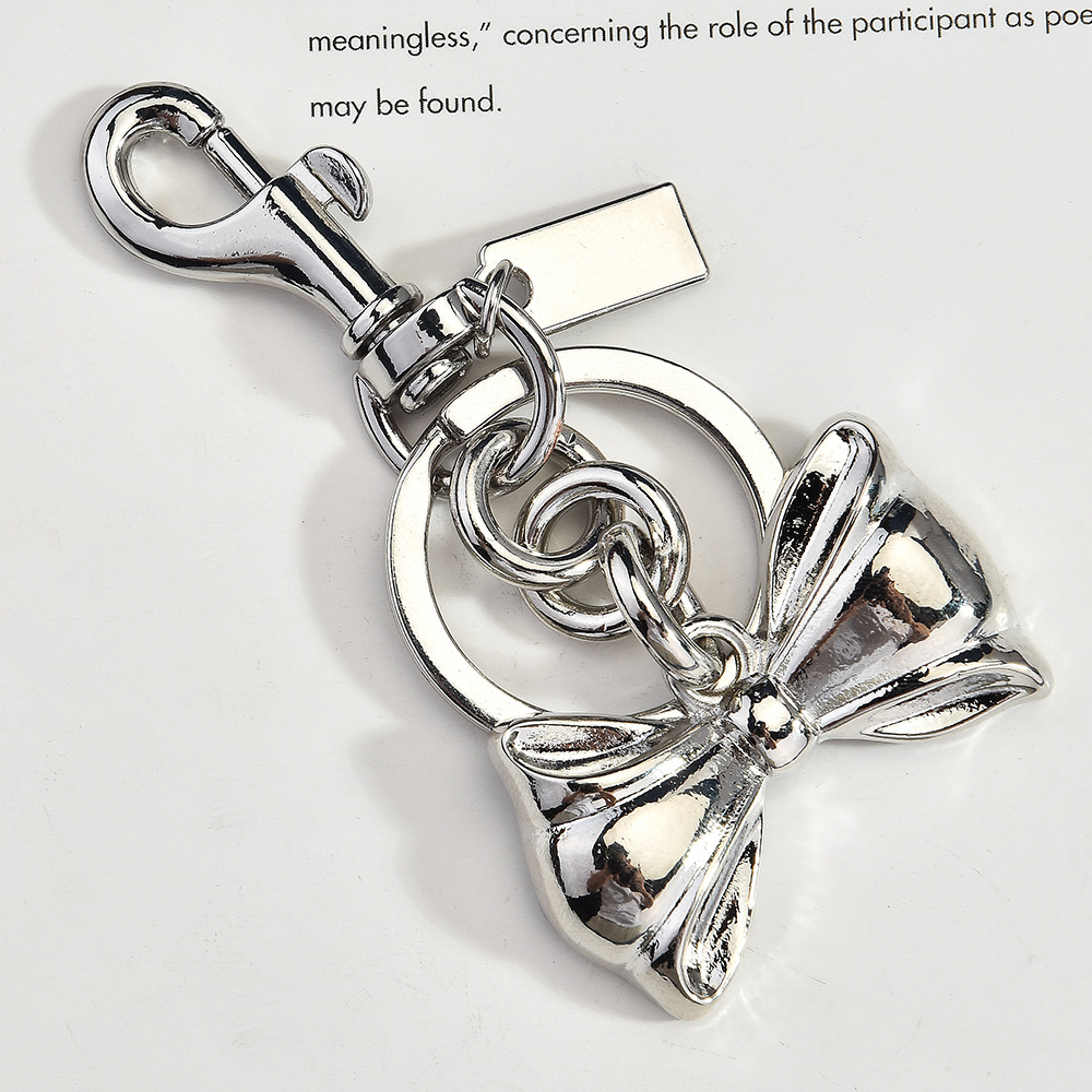 Shaped with a three-dimensional bow, there are gold and silver colors available, with a delicate metallic texture and bright luster. With a strong keychain and chain, it can hang keys and decorate bags, adding exquisite sweetness to the outfit, and is a practical accessory that enhances the sense of fashion.