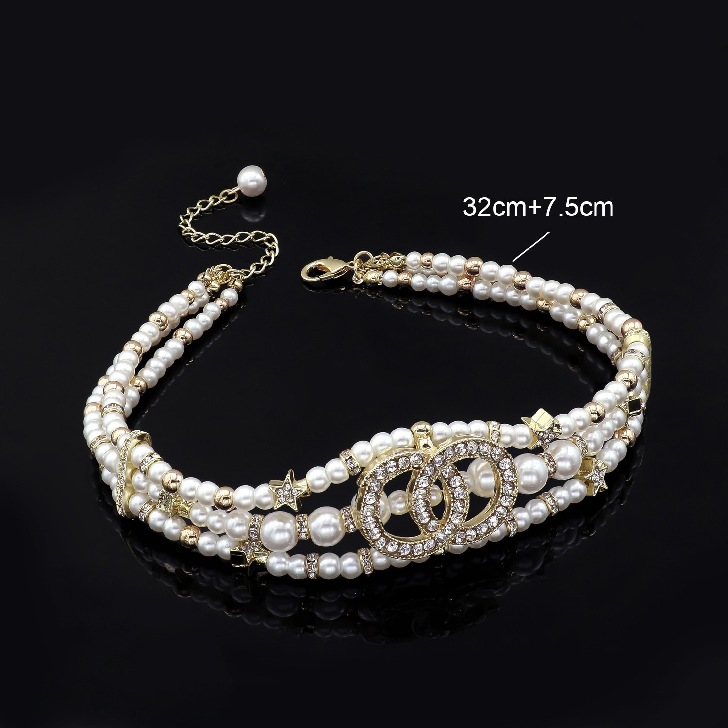 Pearl double C diamond choker | A vintage and elegant celebrity-style necklace