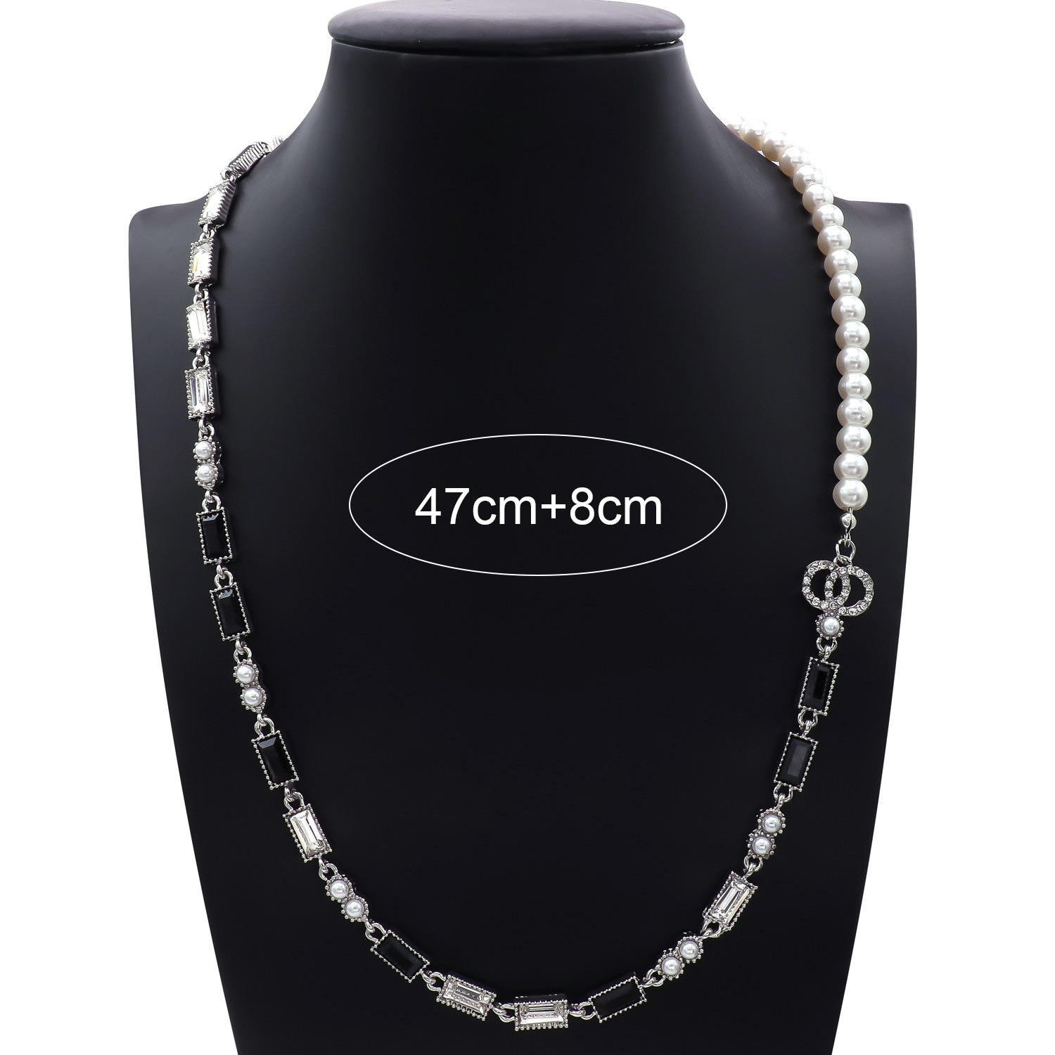 The super attentive pearl splicing glitter diamond long chain is here ✨ One side of the pearl is warm, the other side is sparkling diamond splicing, and there is also a classic double C buckle, retro and personal, the length is just right for all kinds of outfits~