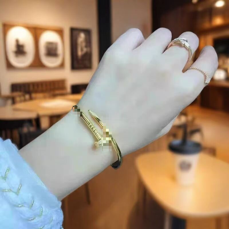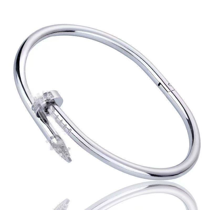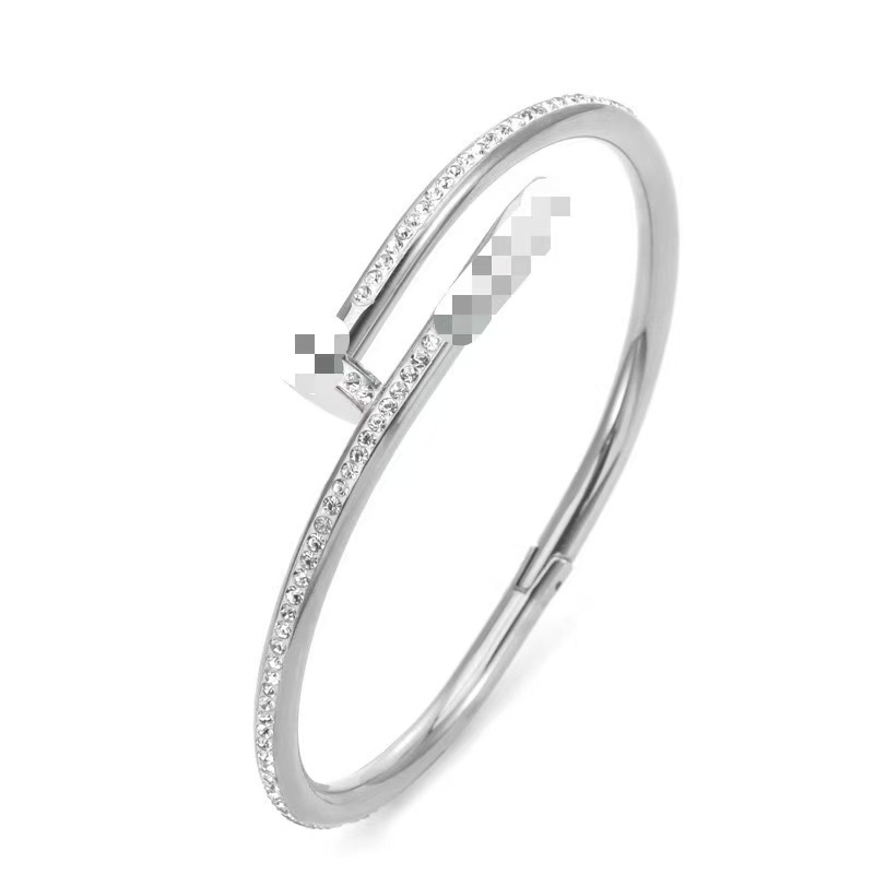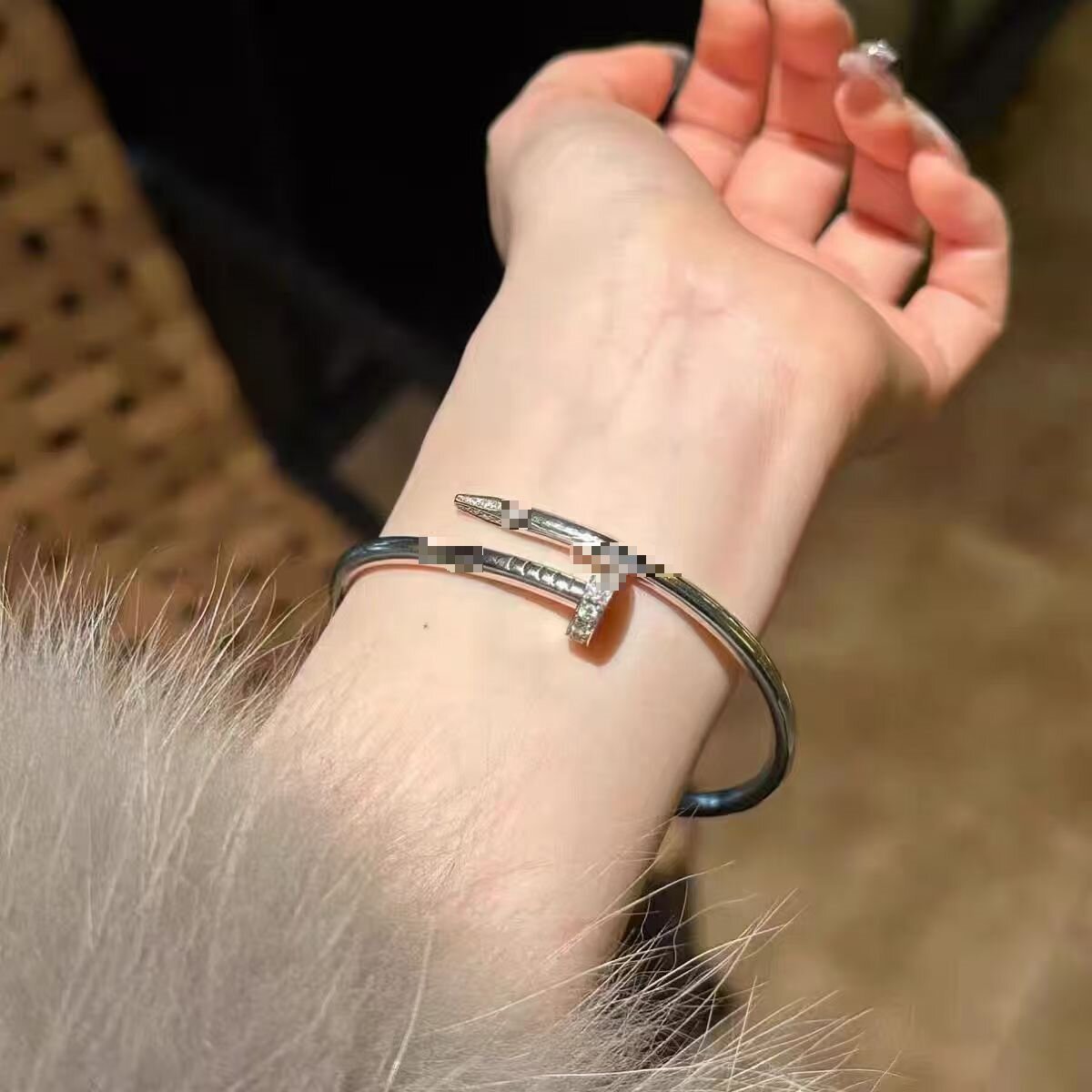 This bracelet is made of silver and has a smooth loop design throughout. Sparkling diamonds are set on specific parts of the bracelet to add a touch of opulence. The unique opening and closing design is easy to wear and remove, simple and exquisite, whether it is for daily matching or attending formal occasions, it can show the wearer's elegant and fashionable temperament.