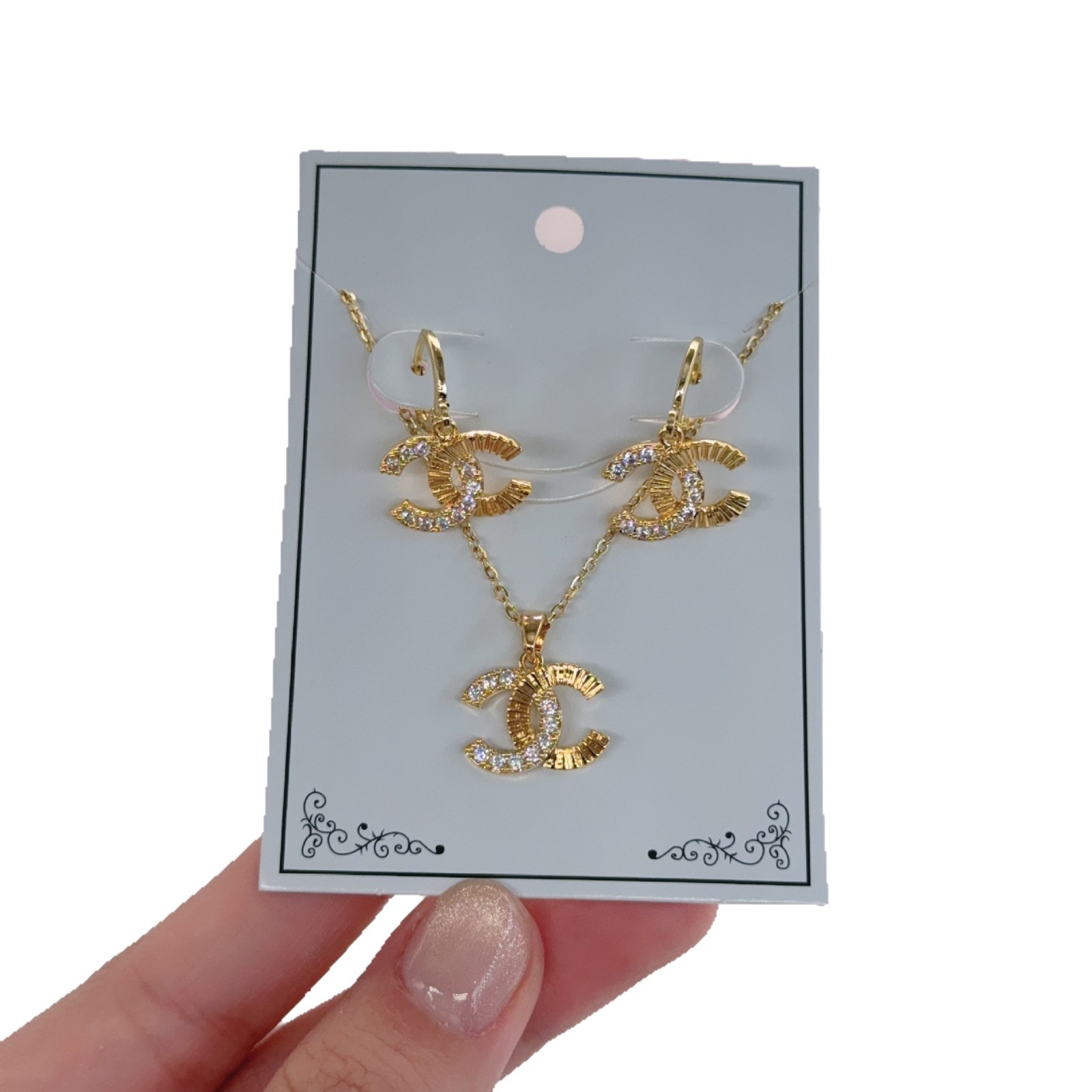 This set of small fragrance and diamond-encrusted sets plays with classic elements with a sense of ๐ luxury Stud earrings and necklaces outline the chain outline in gold, full of fine diamonds, and the double C logo is delicate and eye-catching. Daily with shirts, elegant and noble; Take a small fragrance jacket and directly grasp the style~ Whether it is a date or commuting, wearing it, the sense of delicacy is instantly full, and it is super suitable for sending yourself or your girlfriends, a must-have "atmosphere artifact" โ for fashion girls
