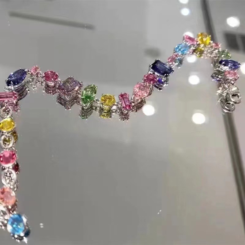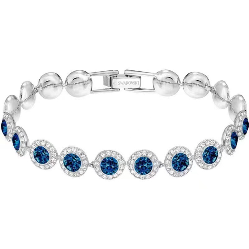 This is a Swarovski brand bracelet, made of rose gold, the chain body is strung with rounded beads, with multiple groups of crystals, each crystal is exquisitely cut and the light reflects each other. Iconic brand buckle for quality. Whether it is paired with everyday casual wear to highlight sophistication or formal occasions such as dinner parties, it can be easily controlled and show off its elegant and fashionable charm.