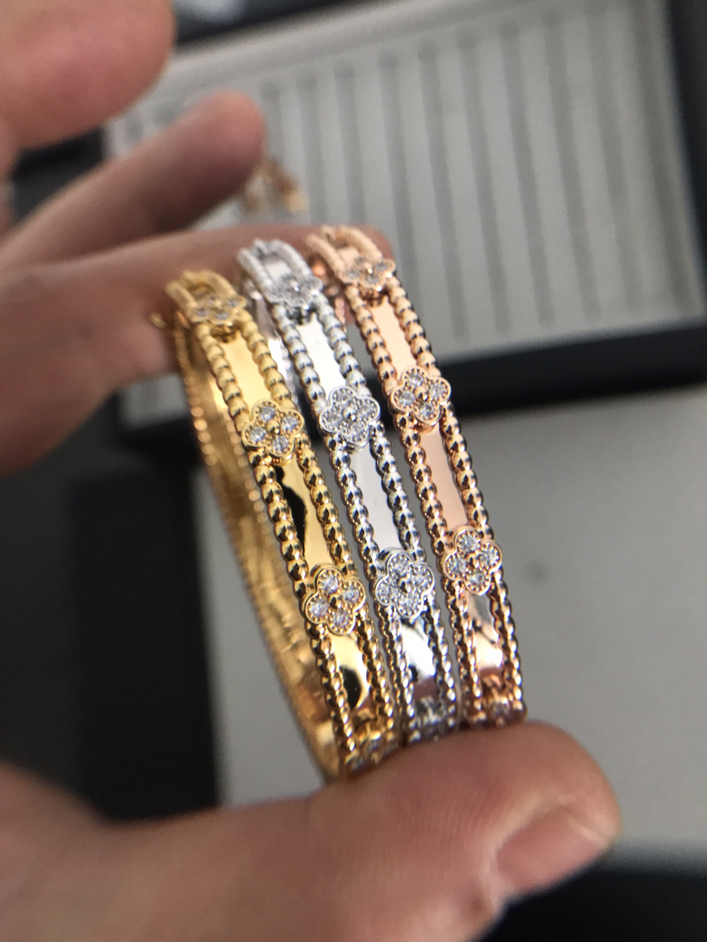 Van Cleef & Arpels-style four-leaf clover diamond bracelet Multi-colored gold bracelet Luxurious and elegant accessories