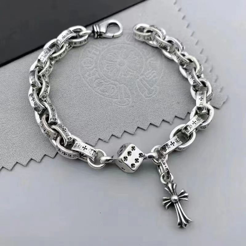 Vintage distressed silver bracelet cross dice personality chain trendy men's and women's silver bracelets.