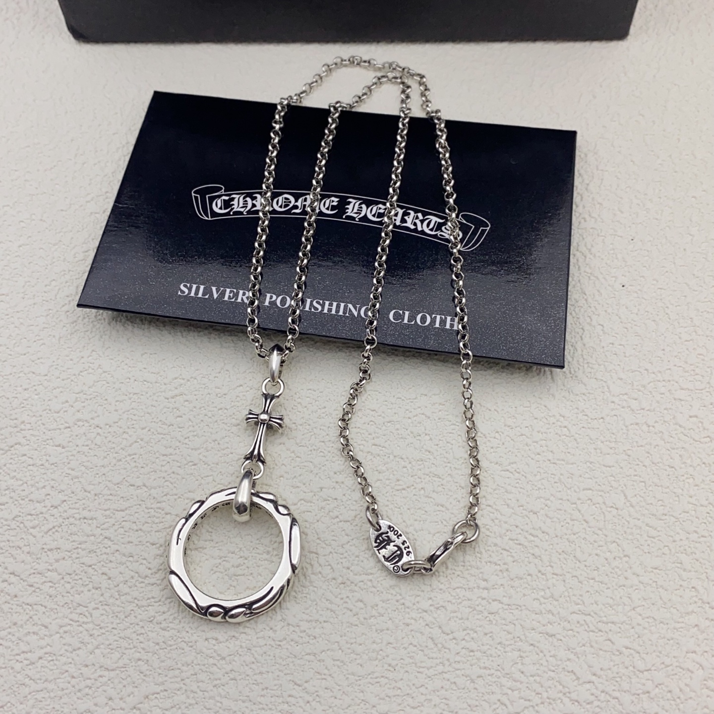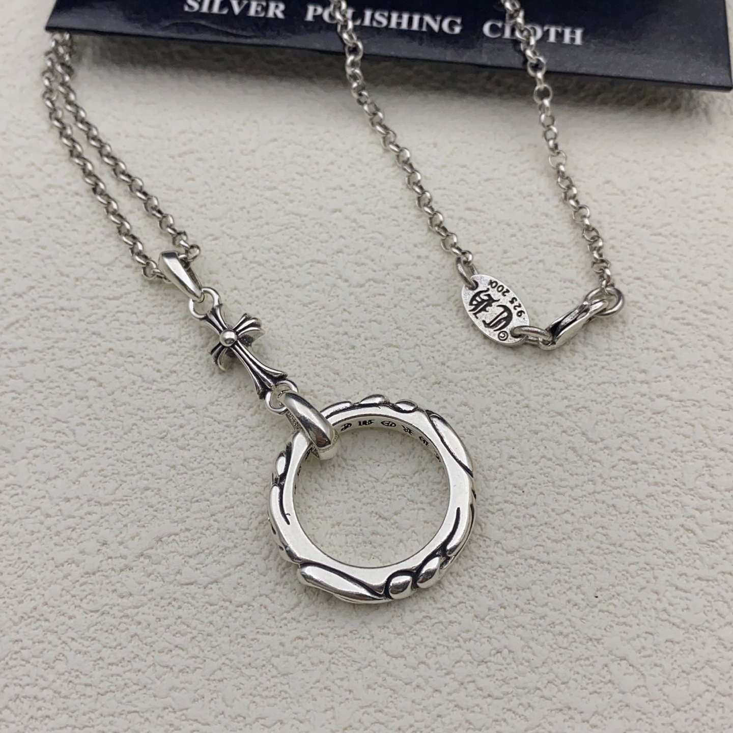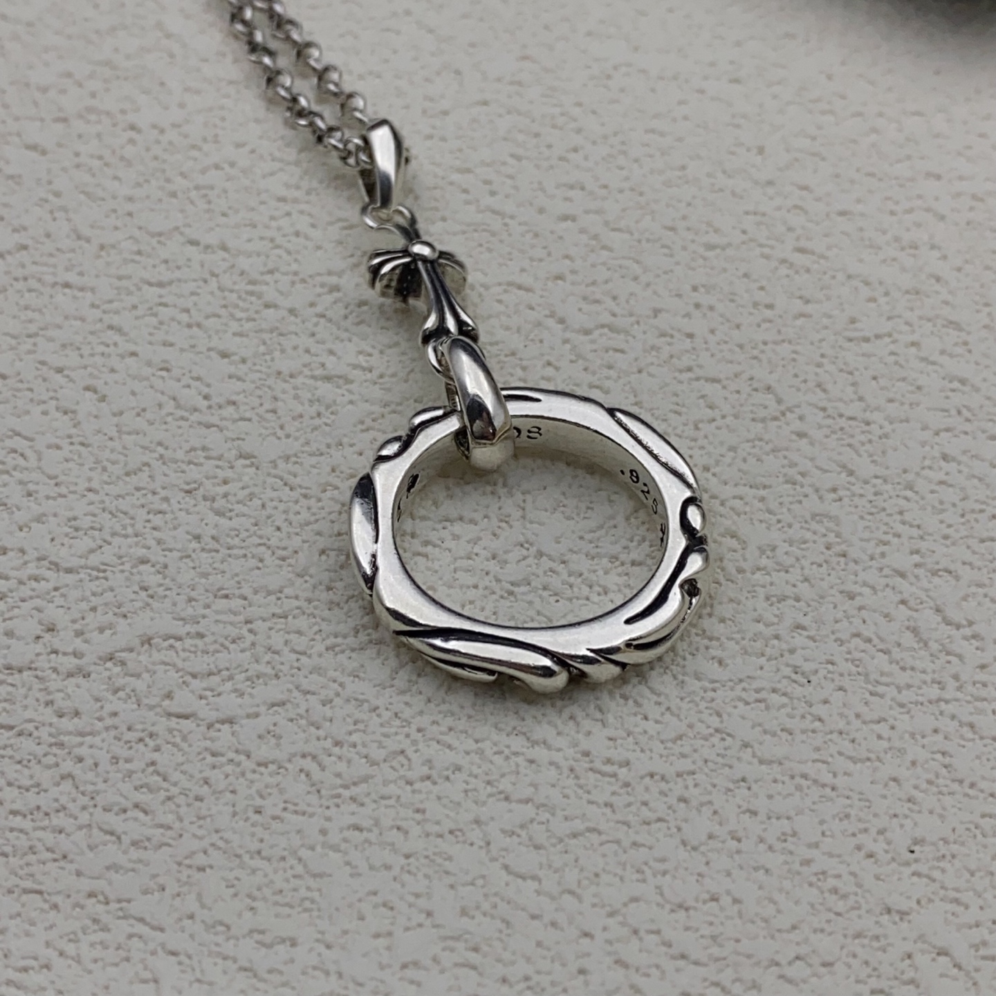 Vintage distressed silver necklace Trendy cross ring pendant Personality punk style choker
