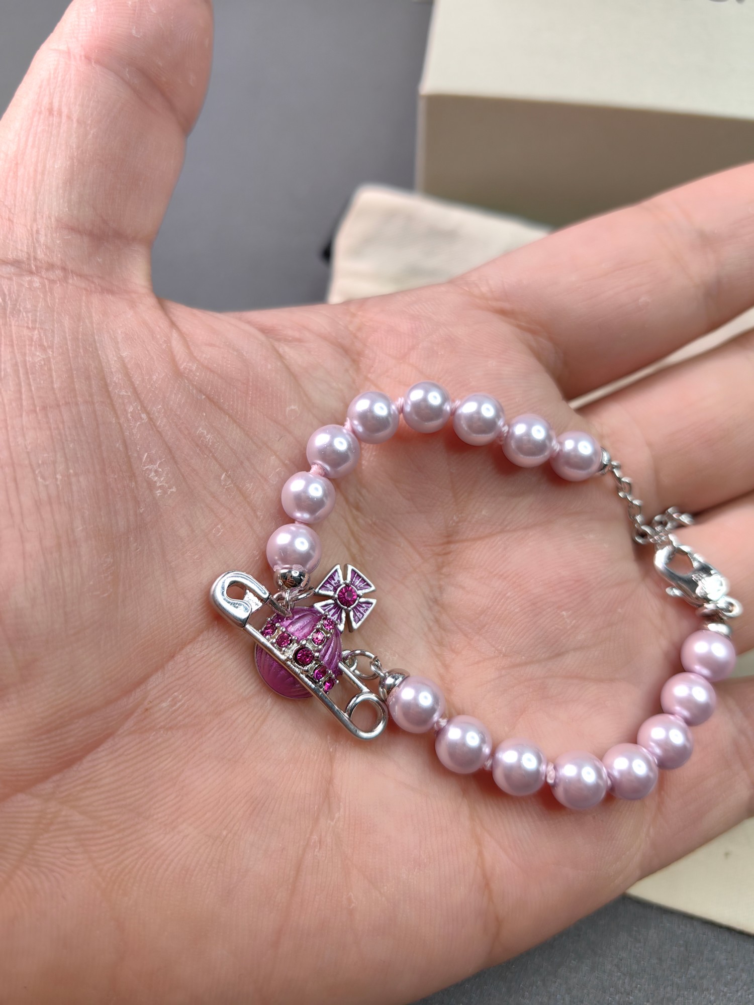 Vivienne Westwood Saturn Pink Pearl Bracelet Brand Elements Pendant Bracelet Sweet and stylish accessory