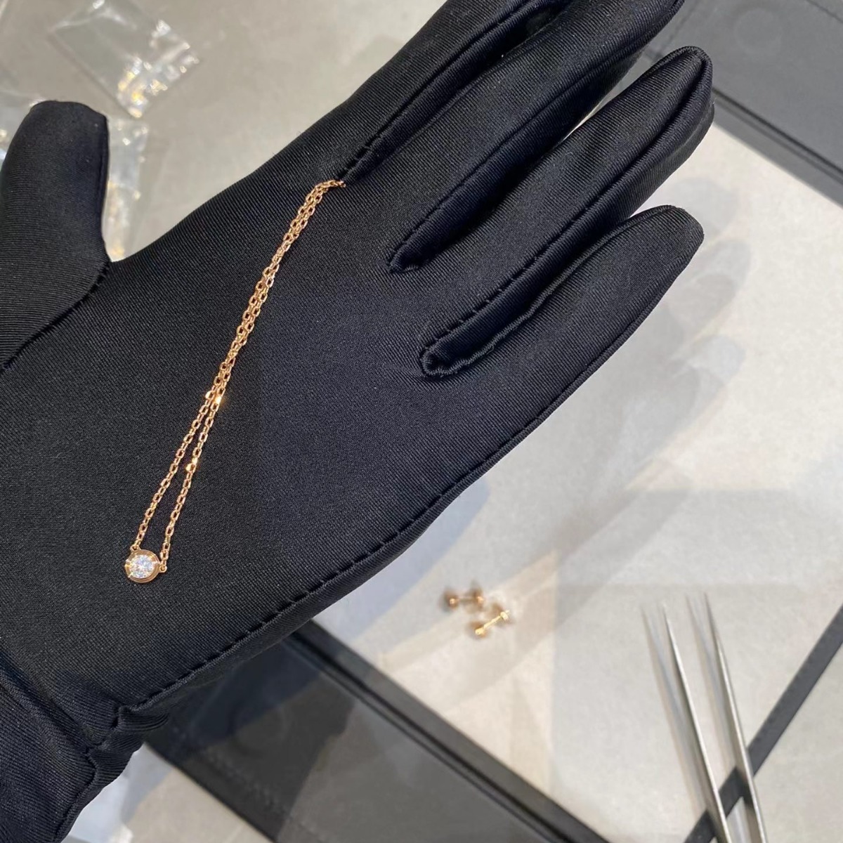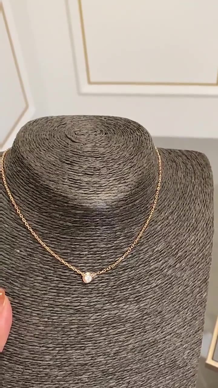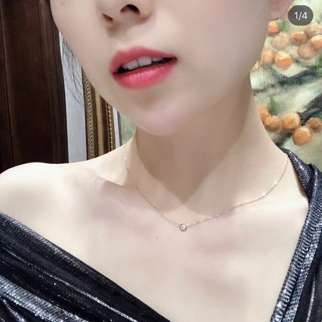 The necklace features a white-gold chain with a round diamond falling below the chain, which is held in place by a delicate setting. Simple yet elegant, it is suitable for all kinds of clothing, whether it is a daily commute or a formal occasion; it can add highlights to the wearer and show a low-key luxury temperament.